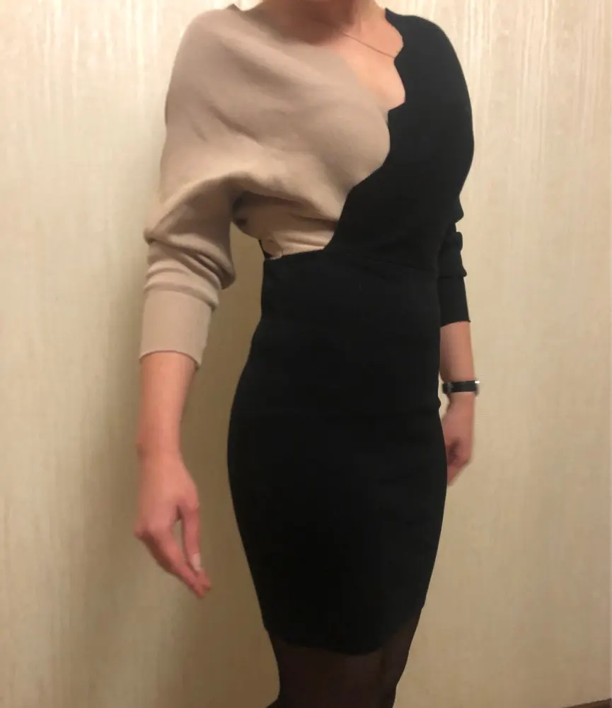 Очень красивое и качественное платье. Серая часть его благородного оттенка. Очень выгодно подчеркивает грудь. Буду носить под серые ботфорты- бомба))))пришло быстро.