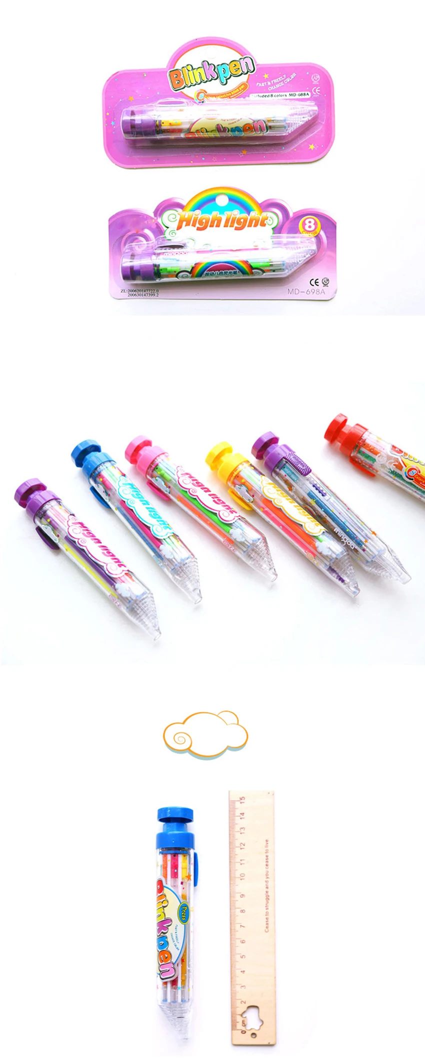 8 в 1 флэш-маркер фотовспышка 0,7 мм Заправка маркер портативная нажимная мигающая ручка школьные офисные принадлежности