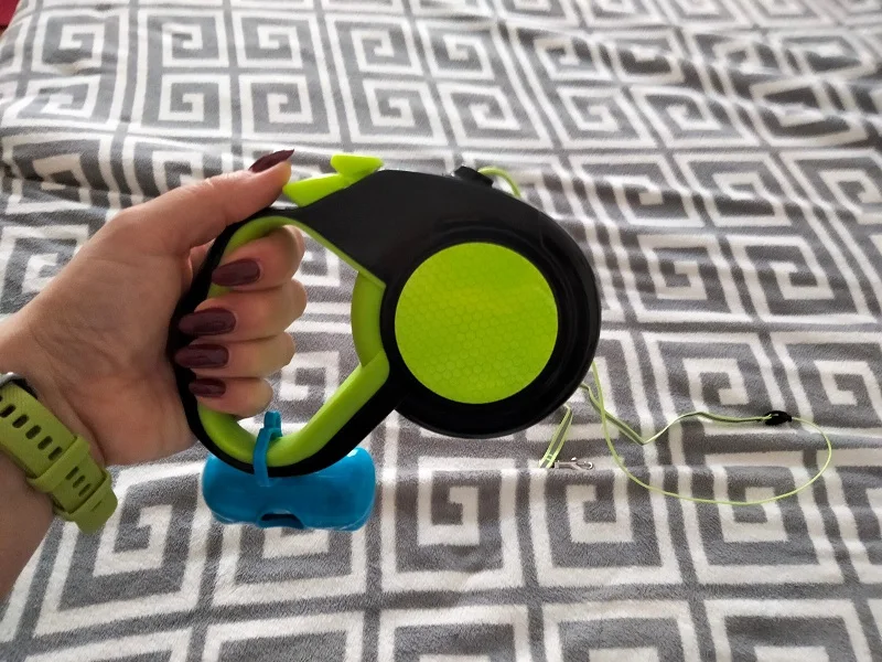 Быстрая доставка , но продавец положил контейнер для пакетов синего цвета)) Я специально заказала этот поводок с черным контейнером ,как на фото,чтобы сочеталось хорошо с зеленой рулеткой,а в итоге ,зеленое и синее,сочетание пипец)) ,тем более,что у нас девочка.Качесто рулетки хорошее,все целое.