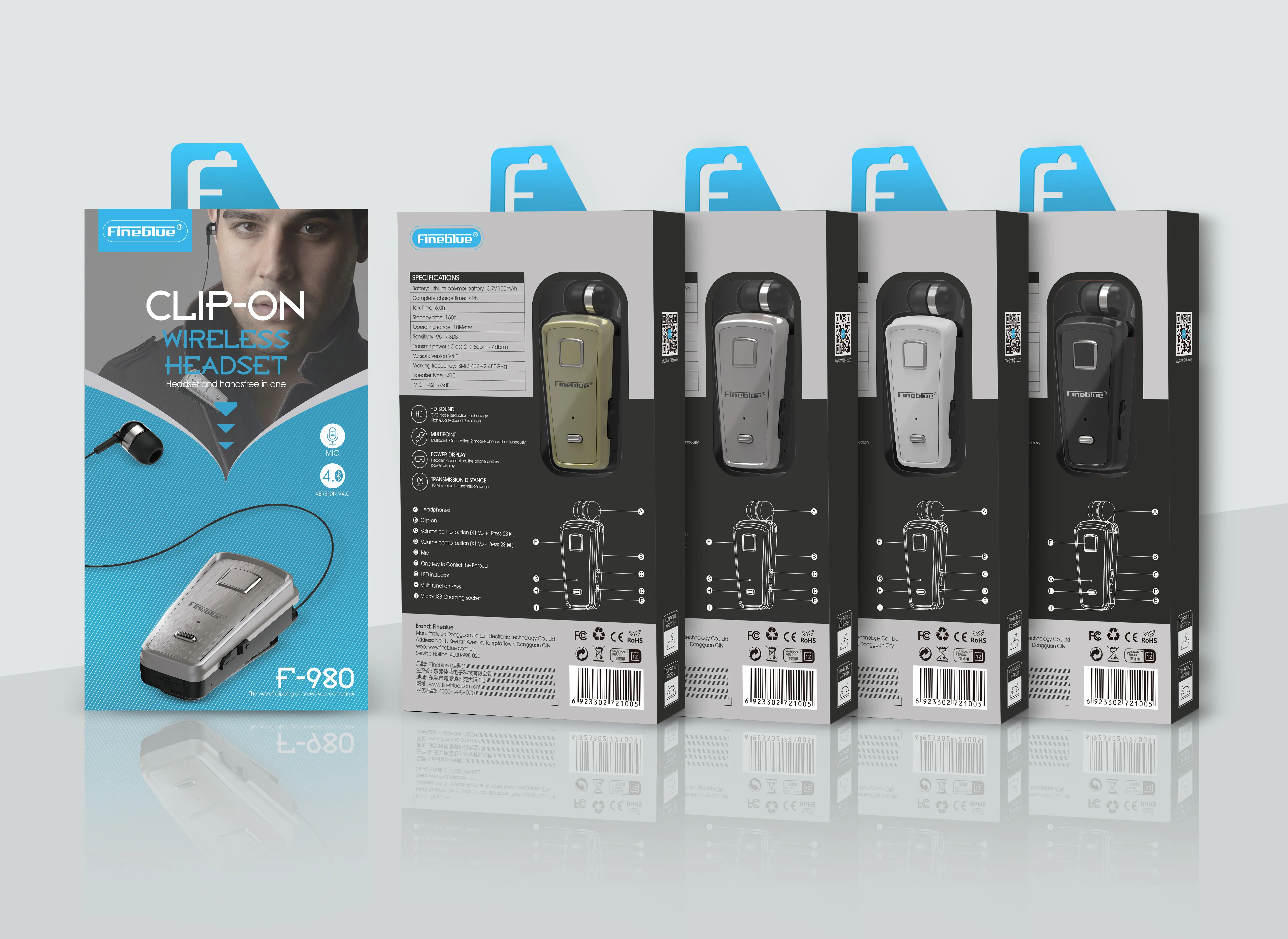 Bluetooth-наушники FineBlue, выдвижные, с функцией шумоподавления, для мобильного телефона
