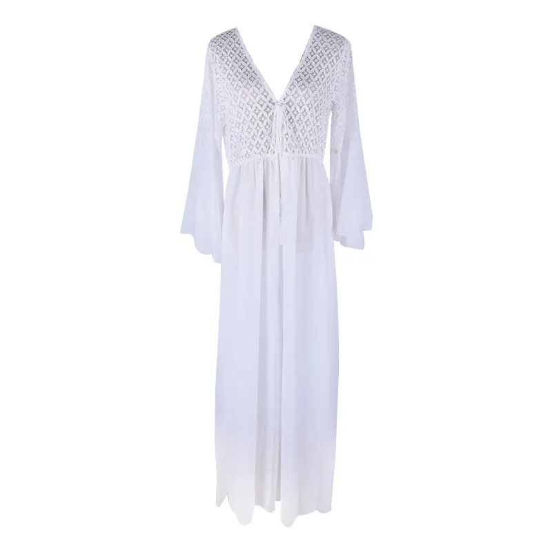 Женское летнее платье-макси с V-образным вырезом и Расклешенным рукавом