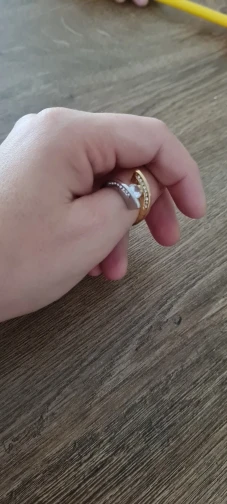 Если честно, мне совсем не понравились кольца, ну вот от слова совсем. Смотрятся грубо, сделаны не аккуратно, на столько желтизной отдают, что невооружённым глазом видно, что не золото. Брала 8 размер, обычно на средний палец одеваются без проблем, здесь кольца немного давят..фото 1 это на картинке продавца, остальные - что мне пришло (соответственно)