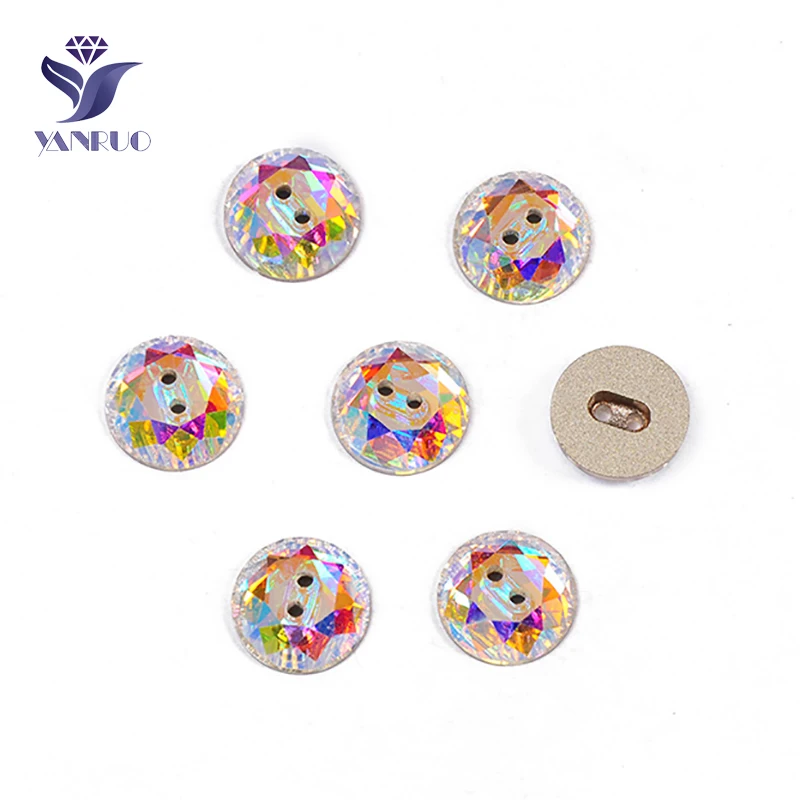 YANRUO 3014 12 мм AB круглые стеклянные кристаллы, Стразы ручной работы, швейные кнопки, аксессуары для одежды