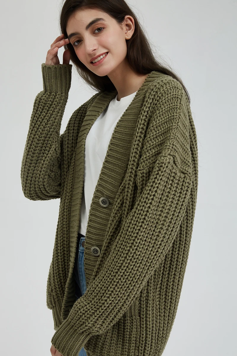 Кардиган женский трикотажный с карманами на осеньзиму, плотный