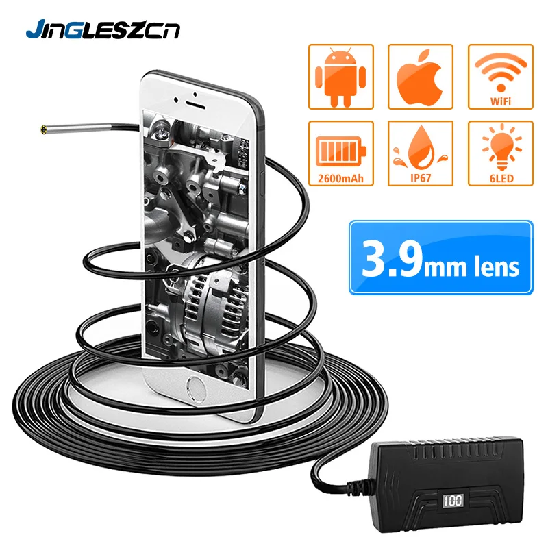 Новейшая 3,9 мм 2.0MP беспроводная эндоскоп камера WiFi бороскоп Инспекционная камера IP67 Гибкая Змея камера для Android iOS ПК