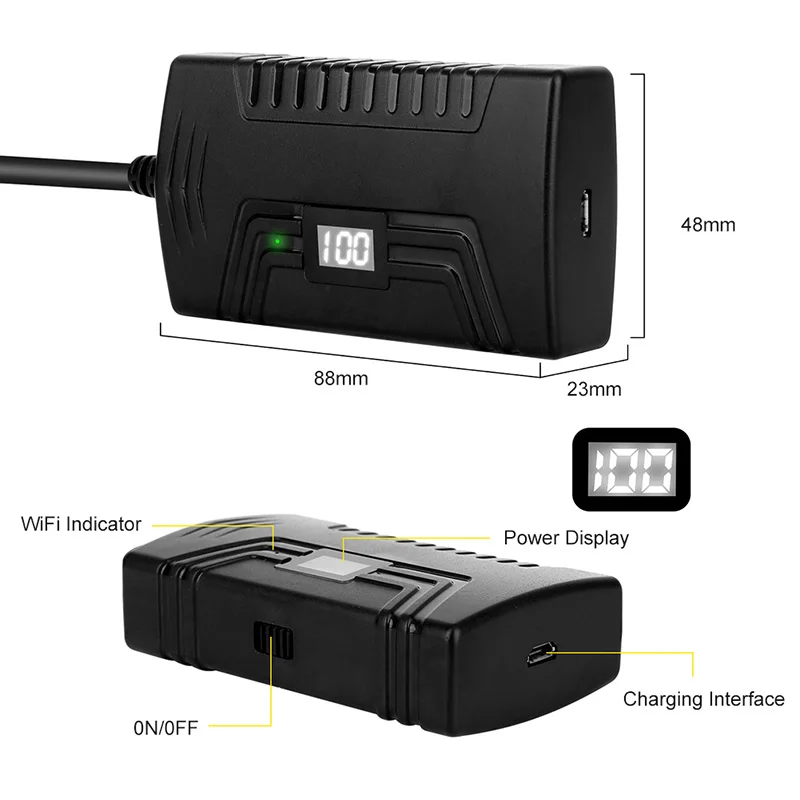 2. [Аккумуляторы 2600 мАч]:Более длительное время работы: емкость более 800 мА · ч,JingleszcnЭндоскоп может работать до 5 часов после полной зарядки, в отличие от камеры, работающей всего несколько минут.