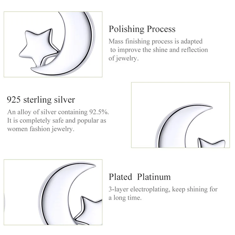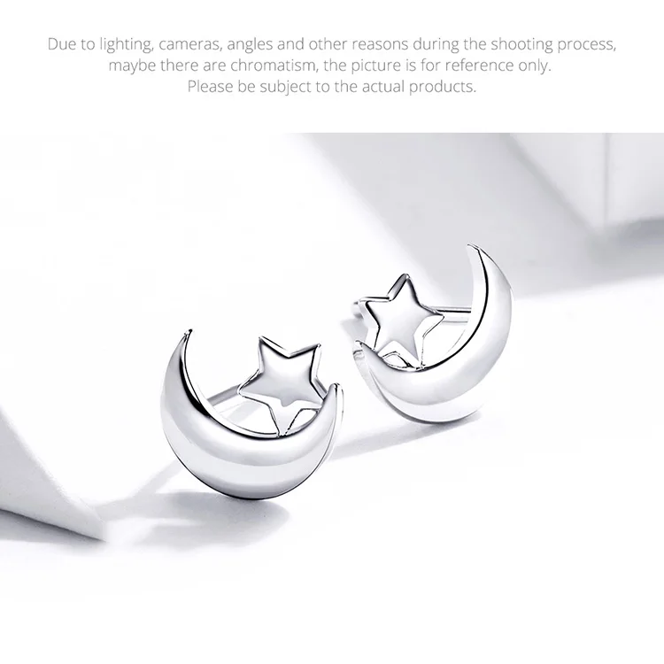 Ювелирные изделия в виде Луны и звезды, яркие изысканные маленькие серьги-гвоздики, серебряные украшения ECE726
