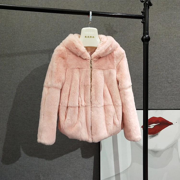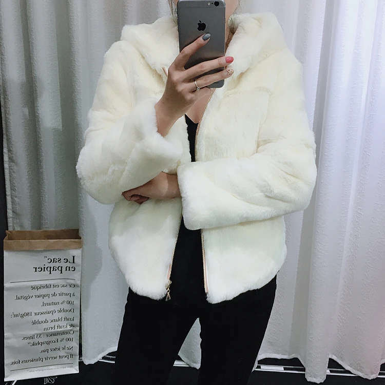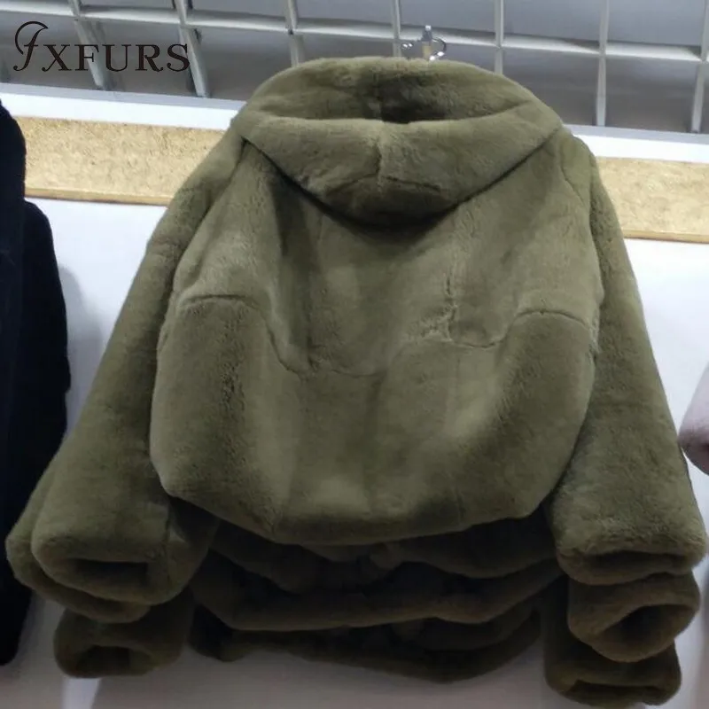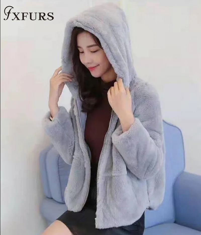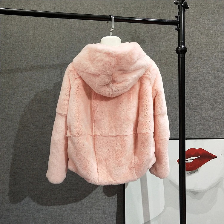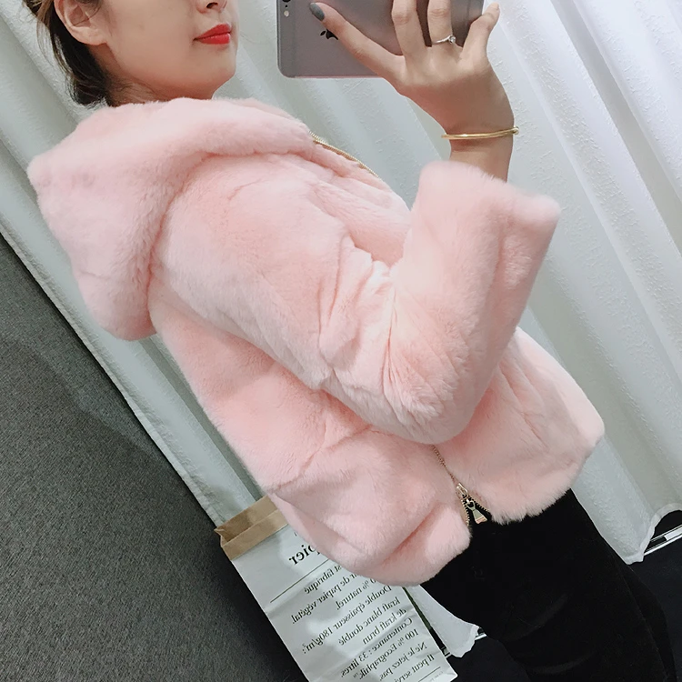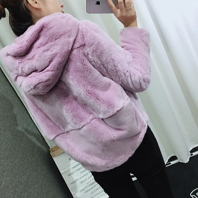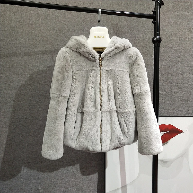 Шуба из 2020 натурального кроличьего меха Рекс, женская зимняя короткая куртка с капюшоном, пальто с длинным рукавом, однотонная верхняя одежда