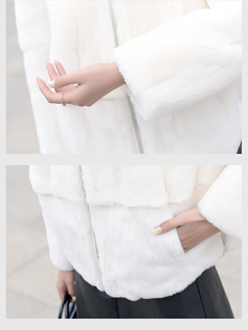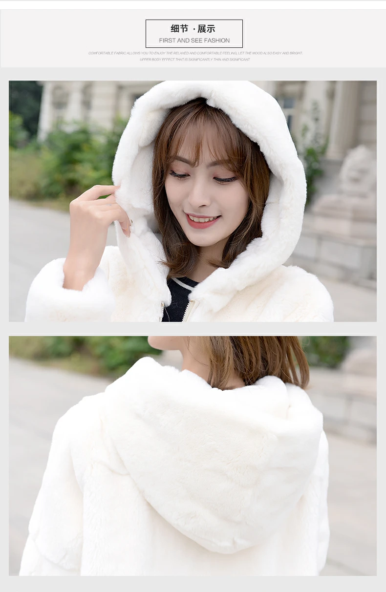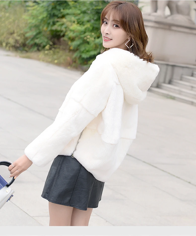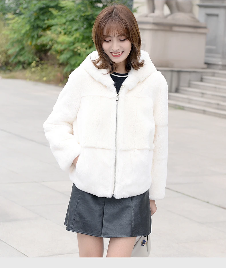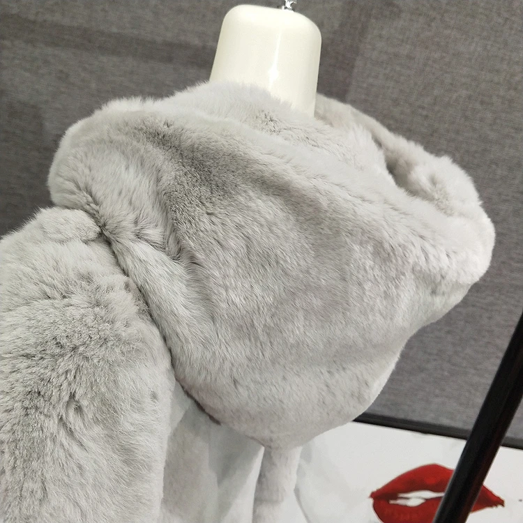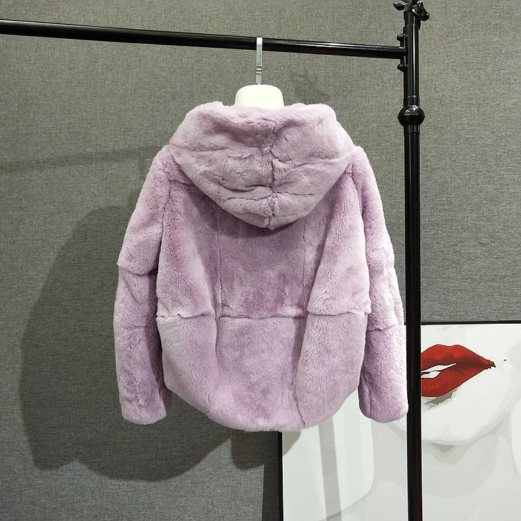Шуба из 2020 натурального кроличьего меха Рекс, женская зимняя короткая куртка с капюшоном, пальто с длинным рукавом, однотонная верхняя одежда