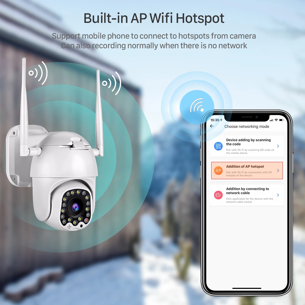 IP-Камера уличная, PTZ, 2 МП, 1080P, с функцией автослежения, с сиренсветильник
