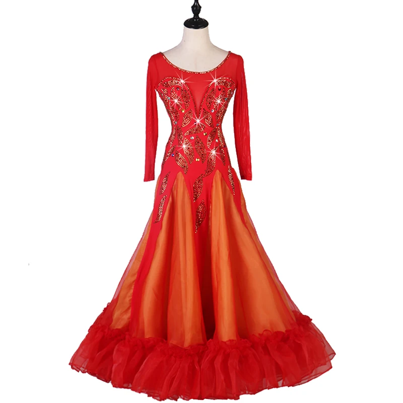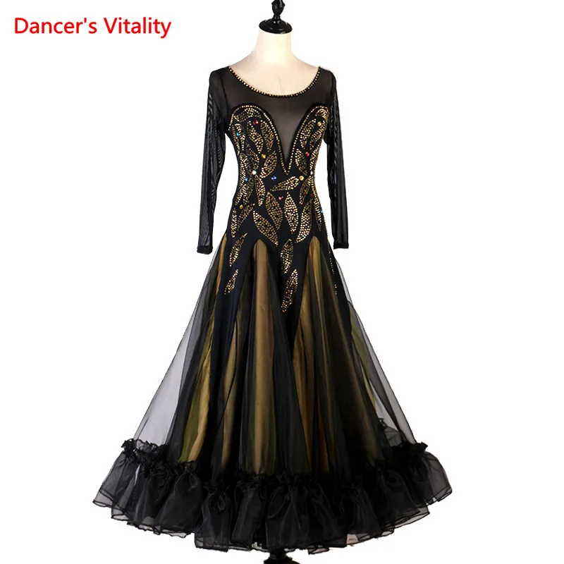 Платье Waltz, стандартные Бальные платья для женщин, новая юбка с длинным рукавом для танцев, вальса, бальных соревнований, танцевальное платье для взрослых, высокое качество
