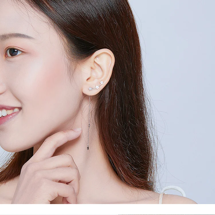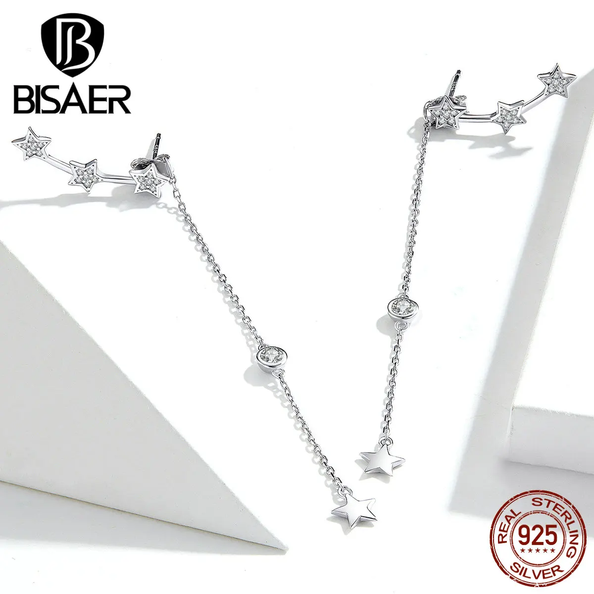 Серьги с кисточками BISAER, 925 пробы, серебро, светящаяся звезда, длинная цепочка, звезда, женские серьги-гвоздики, ювелирные изделия из стерлингового серебра ECE727