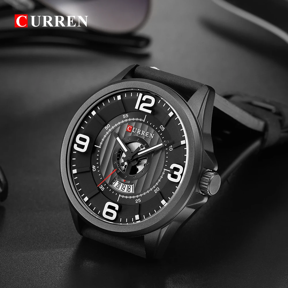 Часы наручные CURREN Мужские кварцевые с кожаным ремешком, 2018