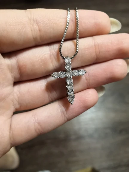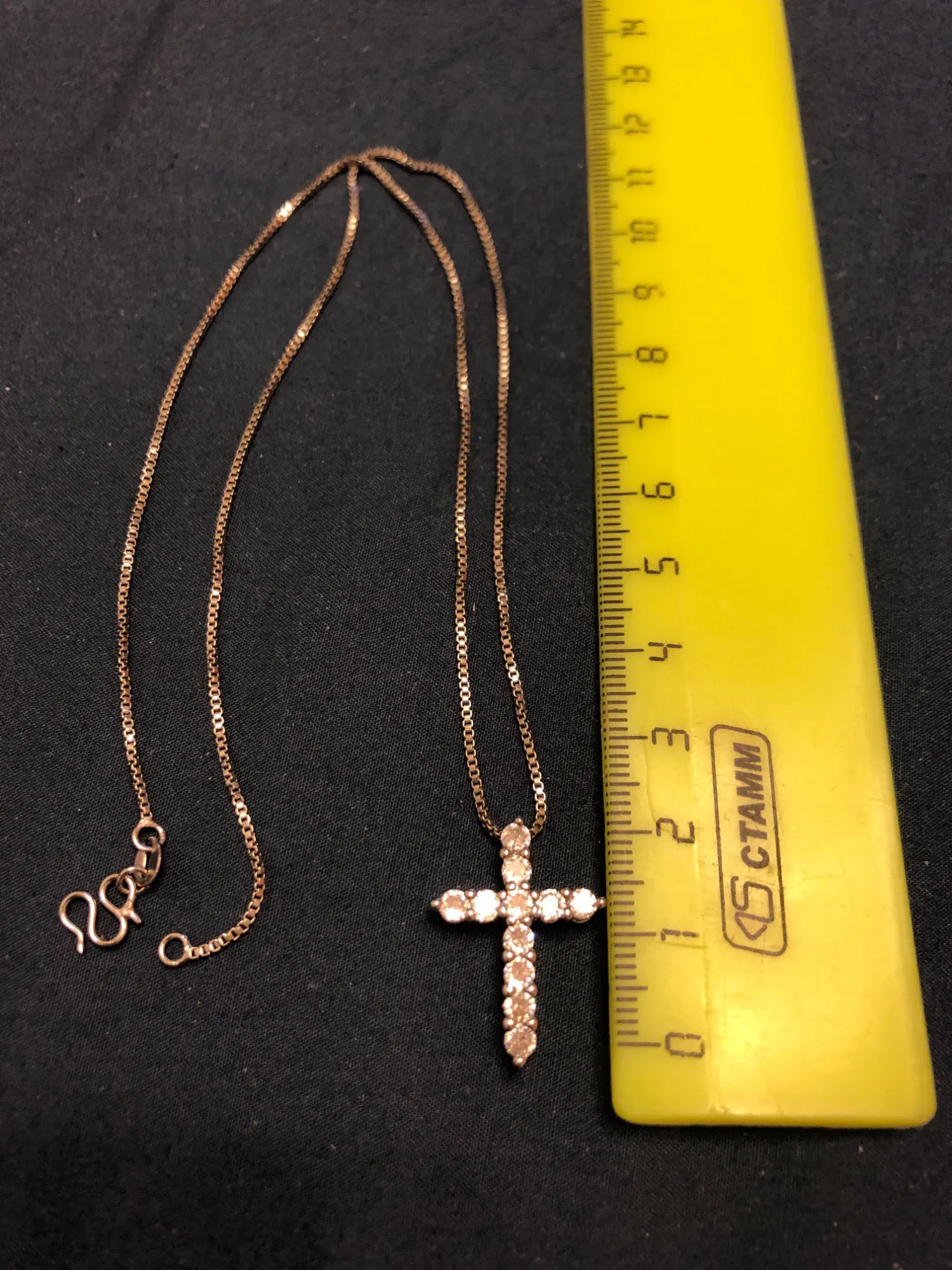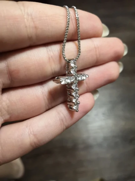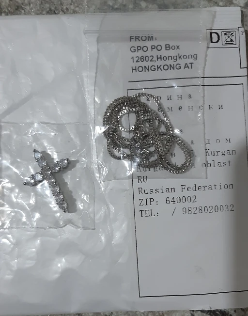 Товар получила в комплекте с другими заказами. Цепочка короткая ,но в принципе нормально по размеру. застежка немного неудобная, подвеска в виде крестика вообще КЛАССНАЯ вещь - крестик маленький, но весь в камнях, переливается . Покупкой очень довольна.Насколько хватит, посмотрим, как быстро потемнеет. Товар и продавца рекомендую. Быстро отправил заказ. СПАСИБО!