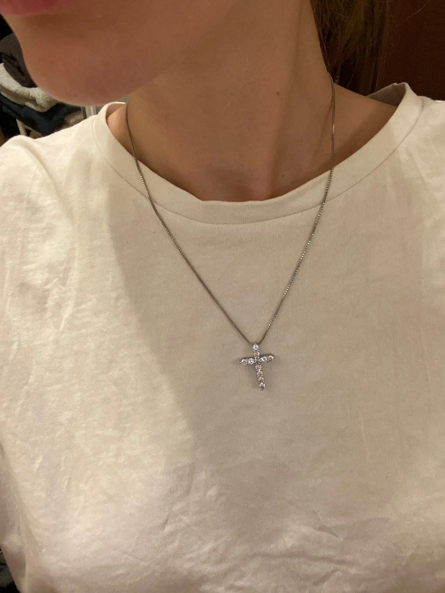 Очень красивый крестик! Смотрится дорого! Но цепочку сразу меняйте! Она портит вид!
