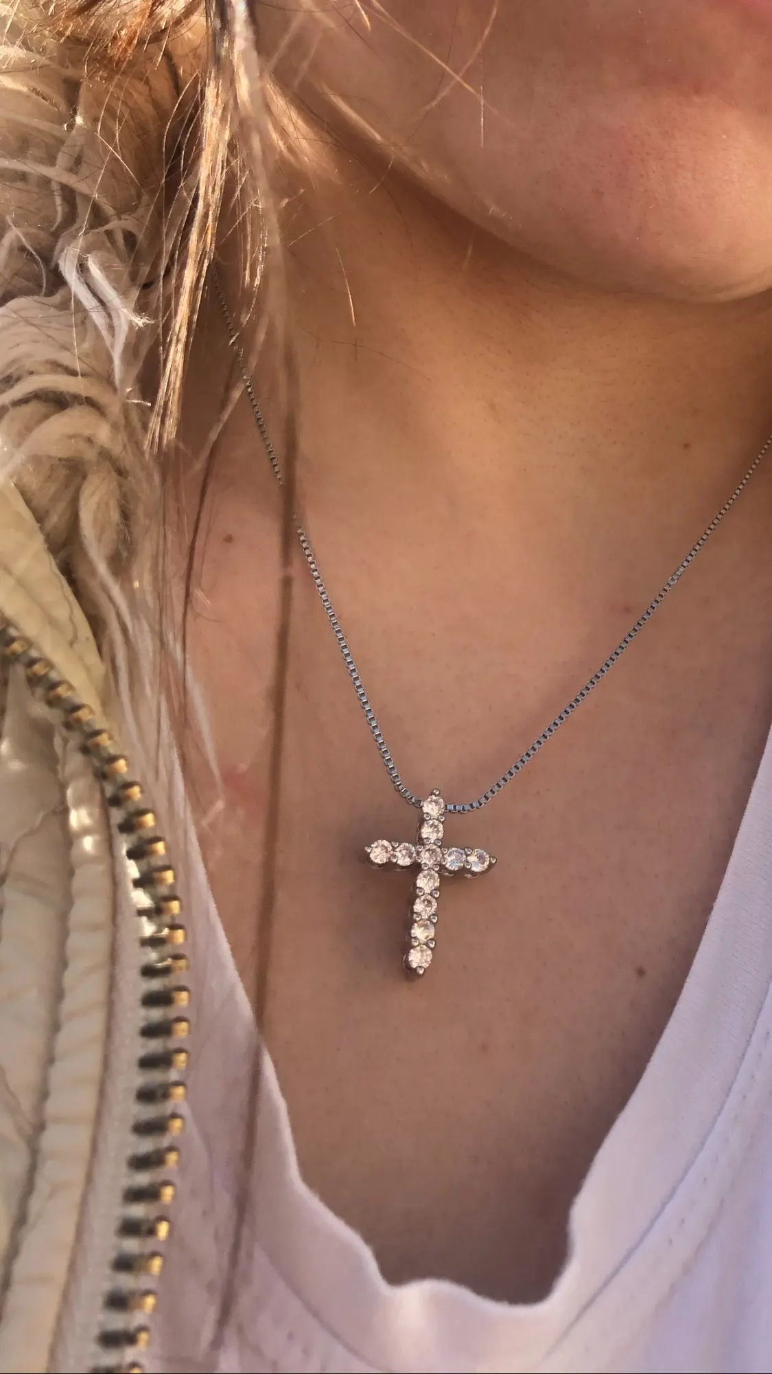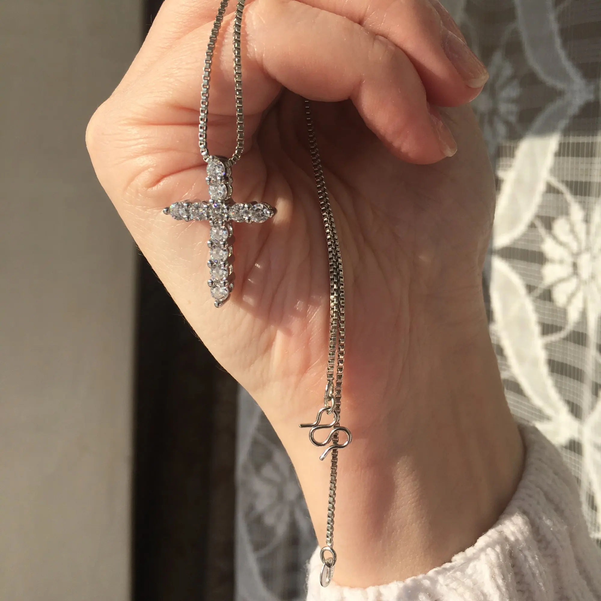 Женская цепочка с подвеской-крестом, серебристого цвета