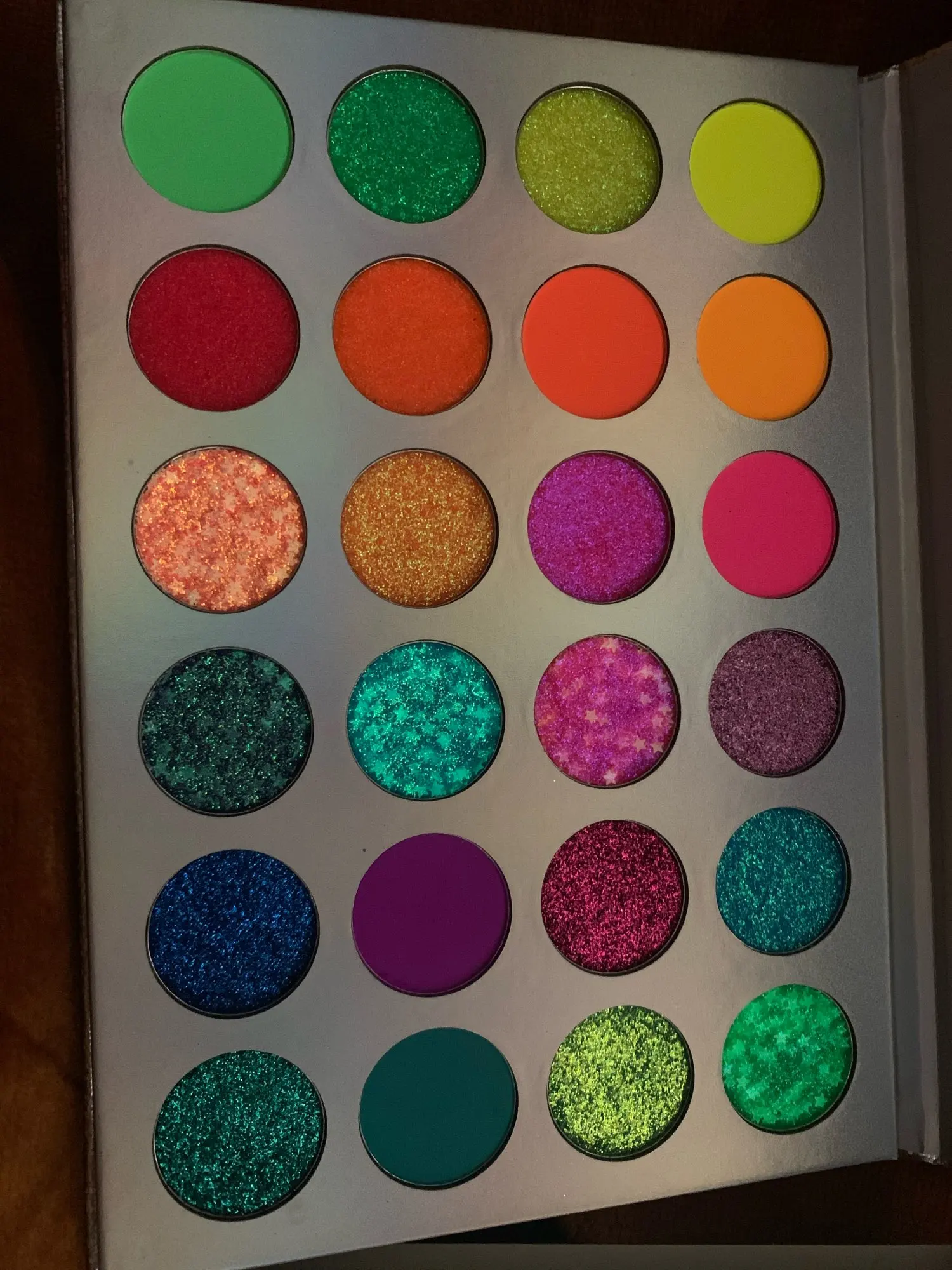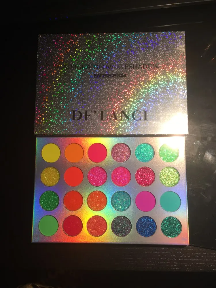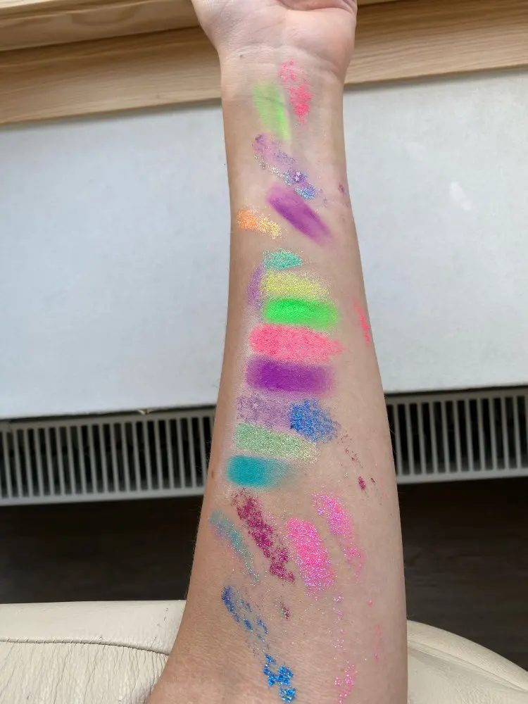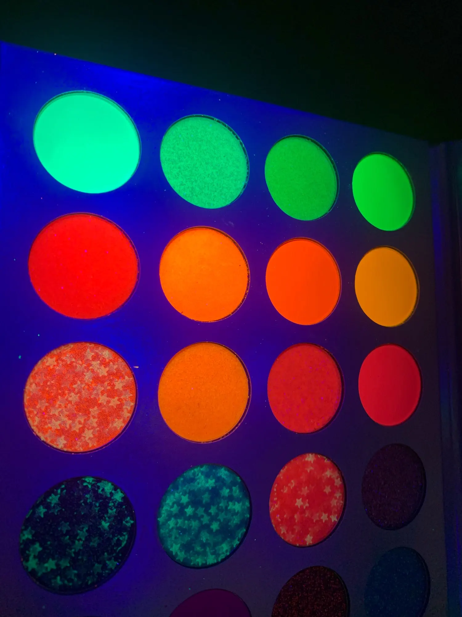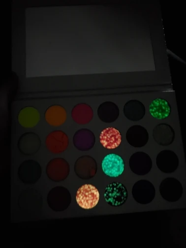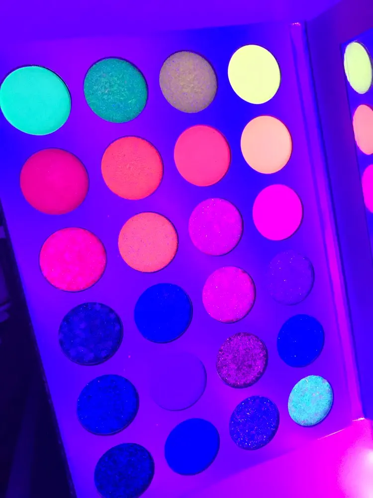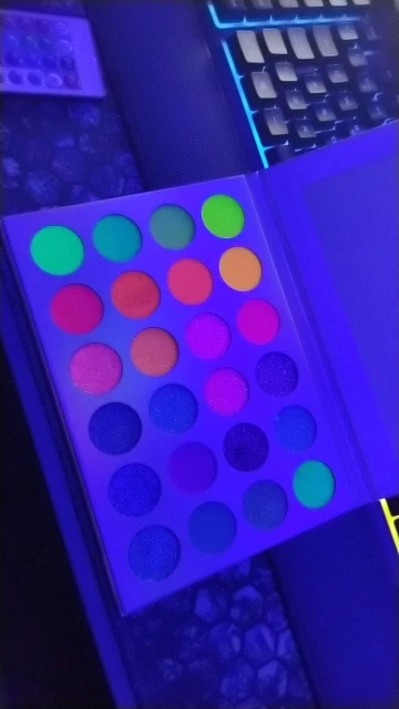 Эта палитра потрясающая! Определенно стоит своих денег, потому что цвета так пигментированы, и они светятся в УФ-свете. Я не могу дождаться использования! Я рекомендую