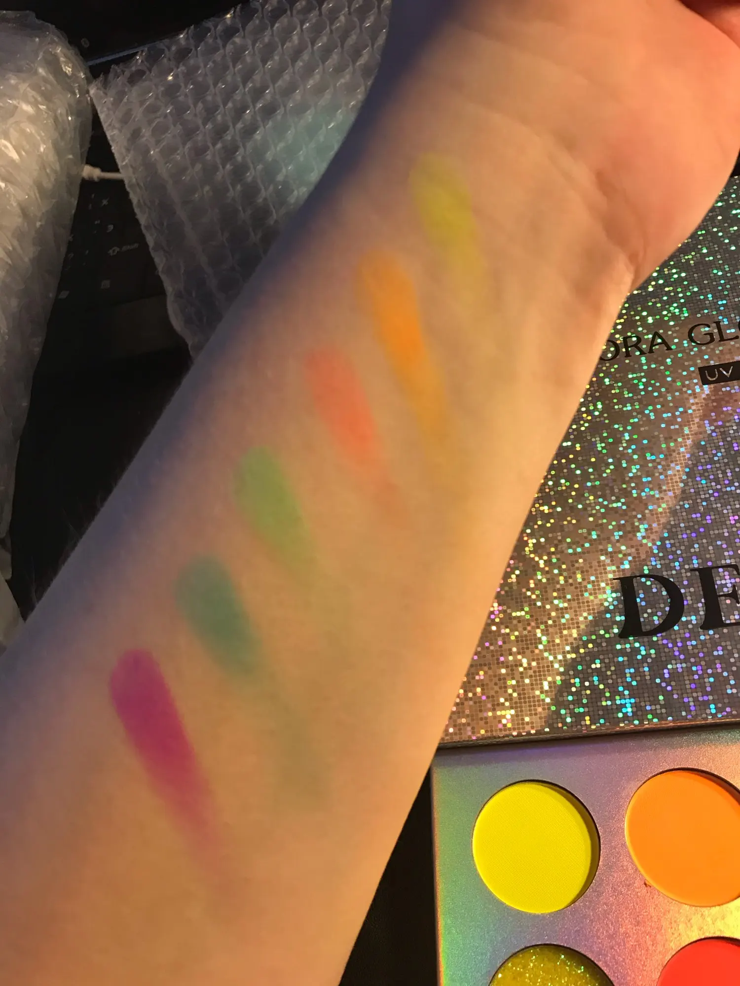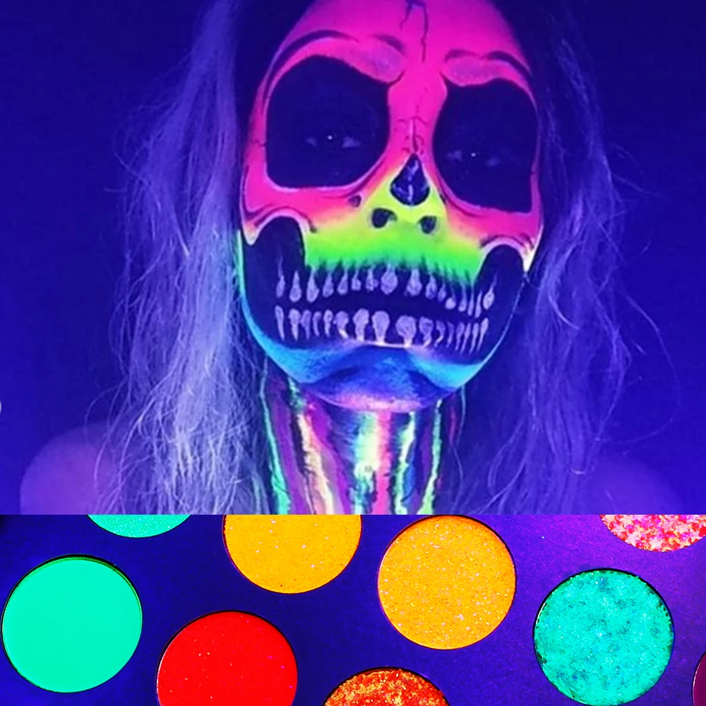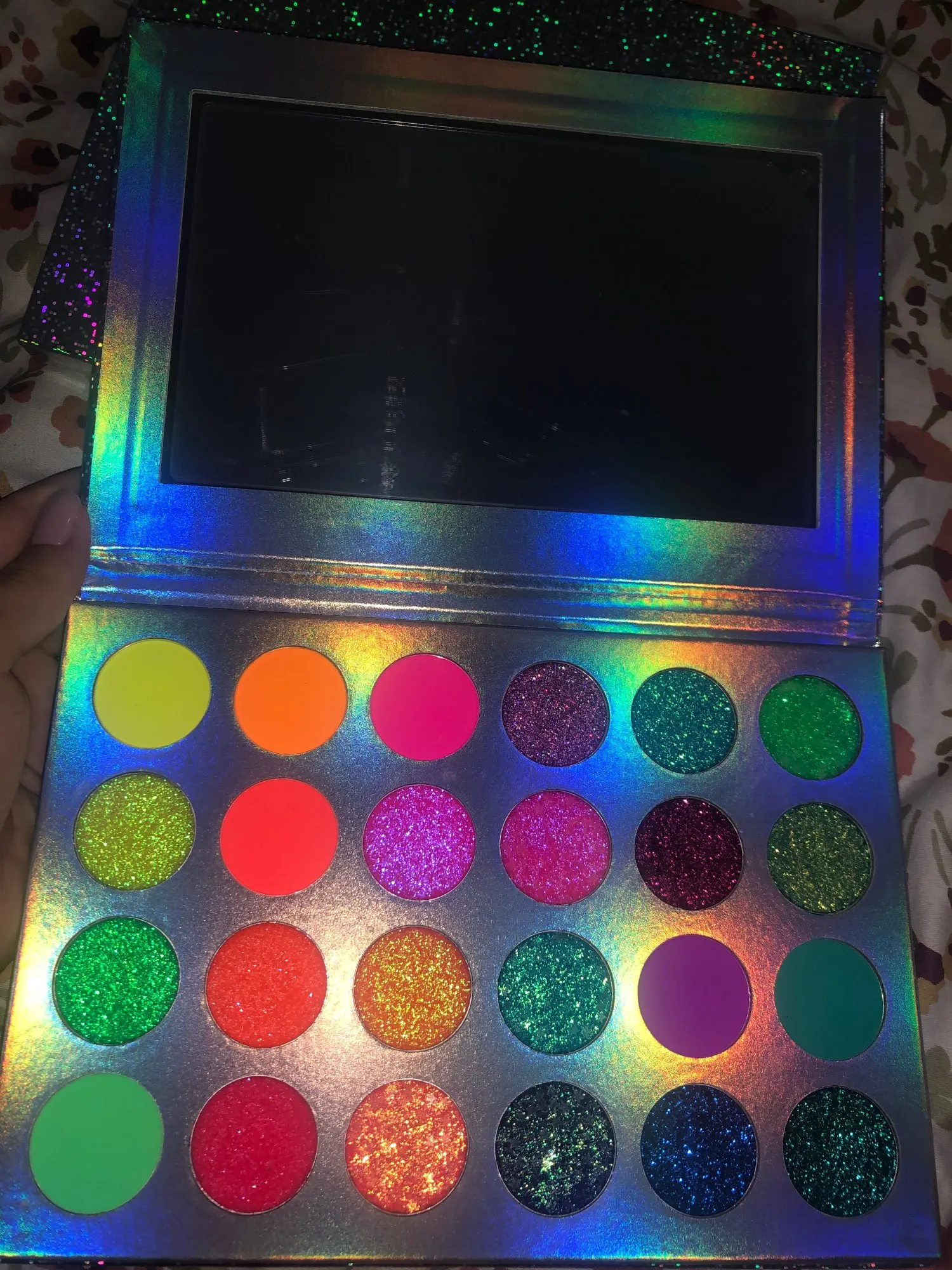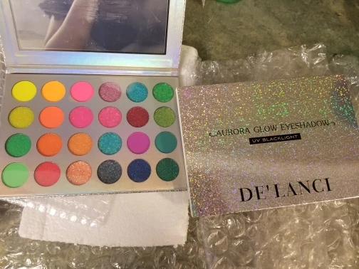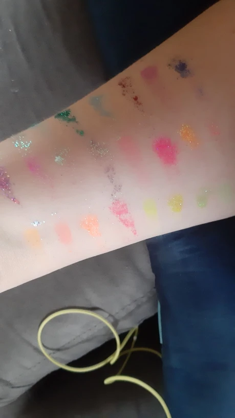 Эта палитра потрясающая! Определенно стоит своих денег, потому что цвета так пигментированы, и они светятся в УФ-свете. Я не могу дождаться использования! Я рекомендую