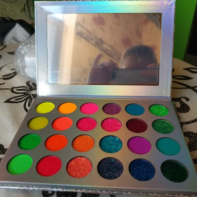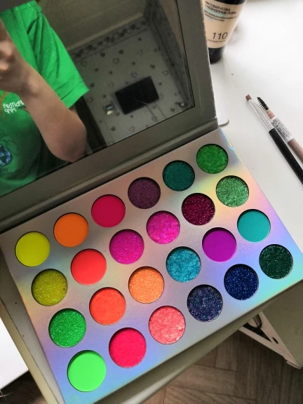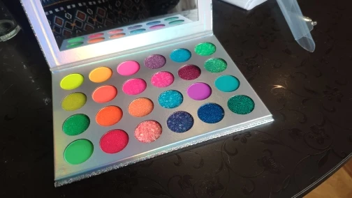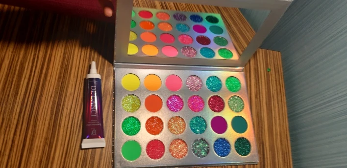 Все подошло в идеальном состоянии, были некоторые проблемы с временем доставки, но это была вина электронной почты моей страны, теней пигмент, как ожидалось, и упаковка драгоценна, зеркало также очень хорошее, и размер палитры приемлем, мне понравилось