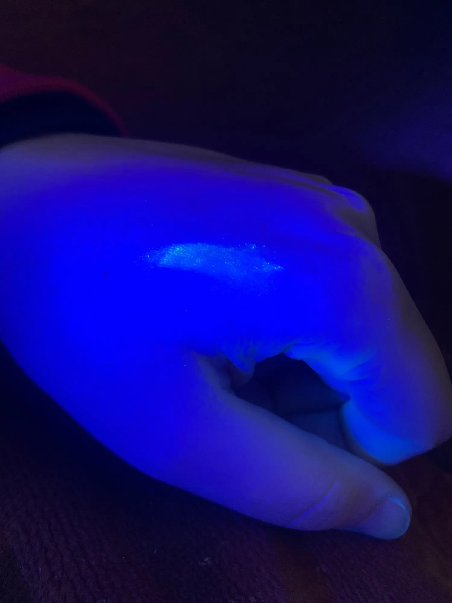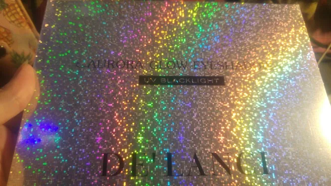 Продукт светится в УФ, как описано. Цвета немного Лоскутные, и блеск, к сожалению, снимает макияж. Но свечение в черном свете невероятно.