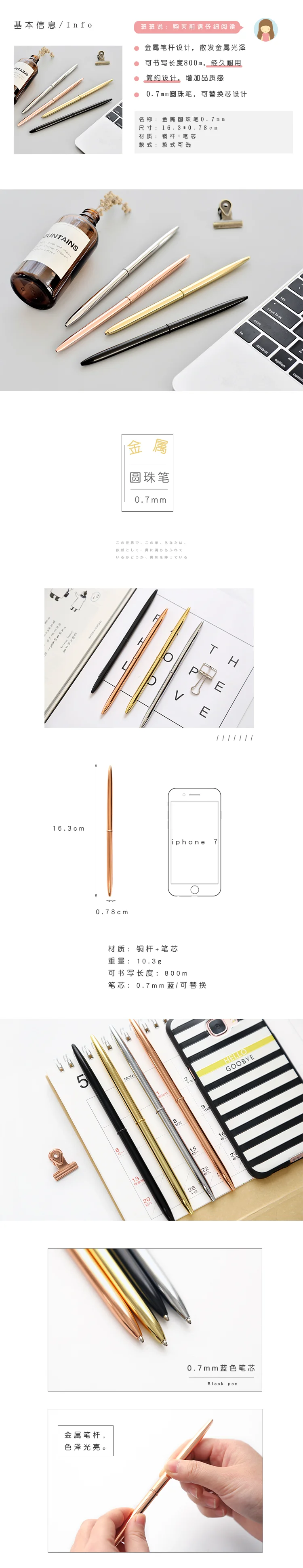 Шариковые ручки, металлические, золотистые, 0,7 мм