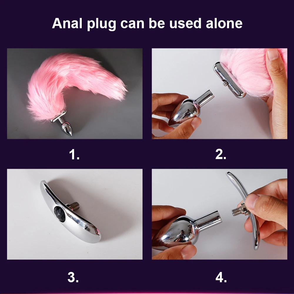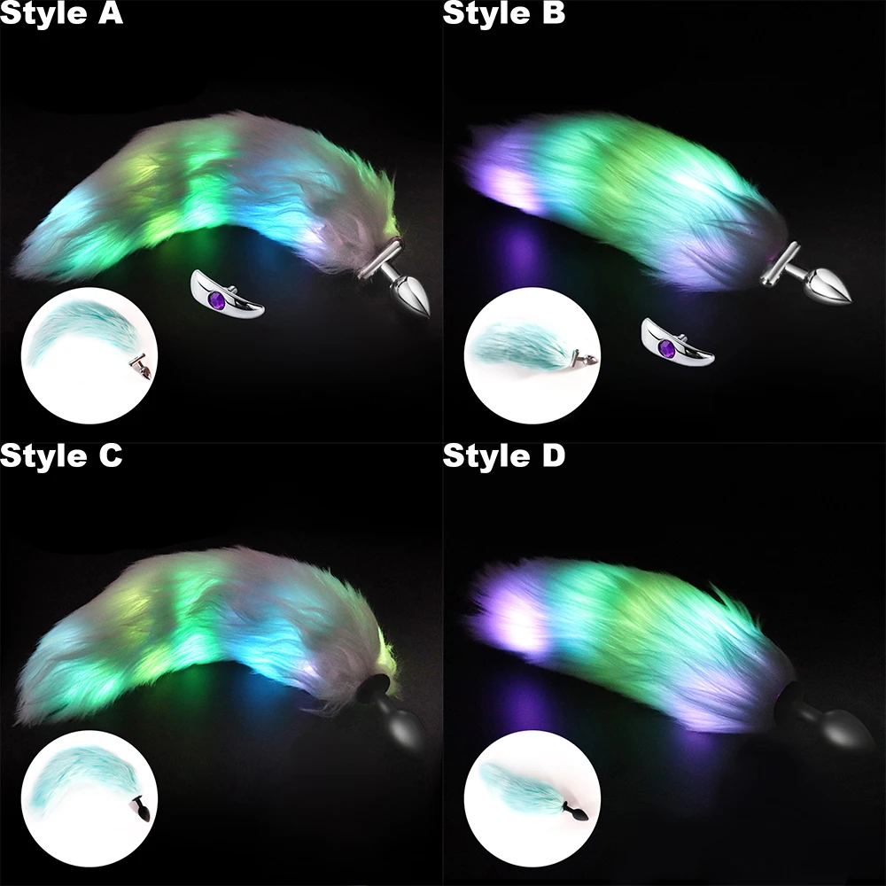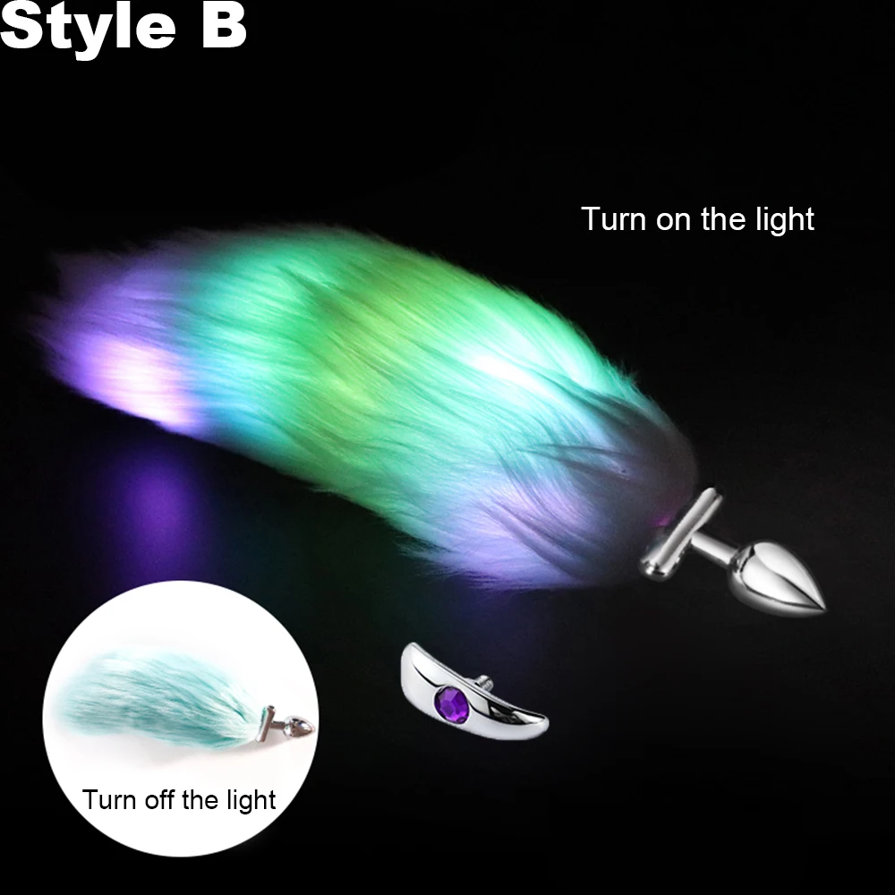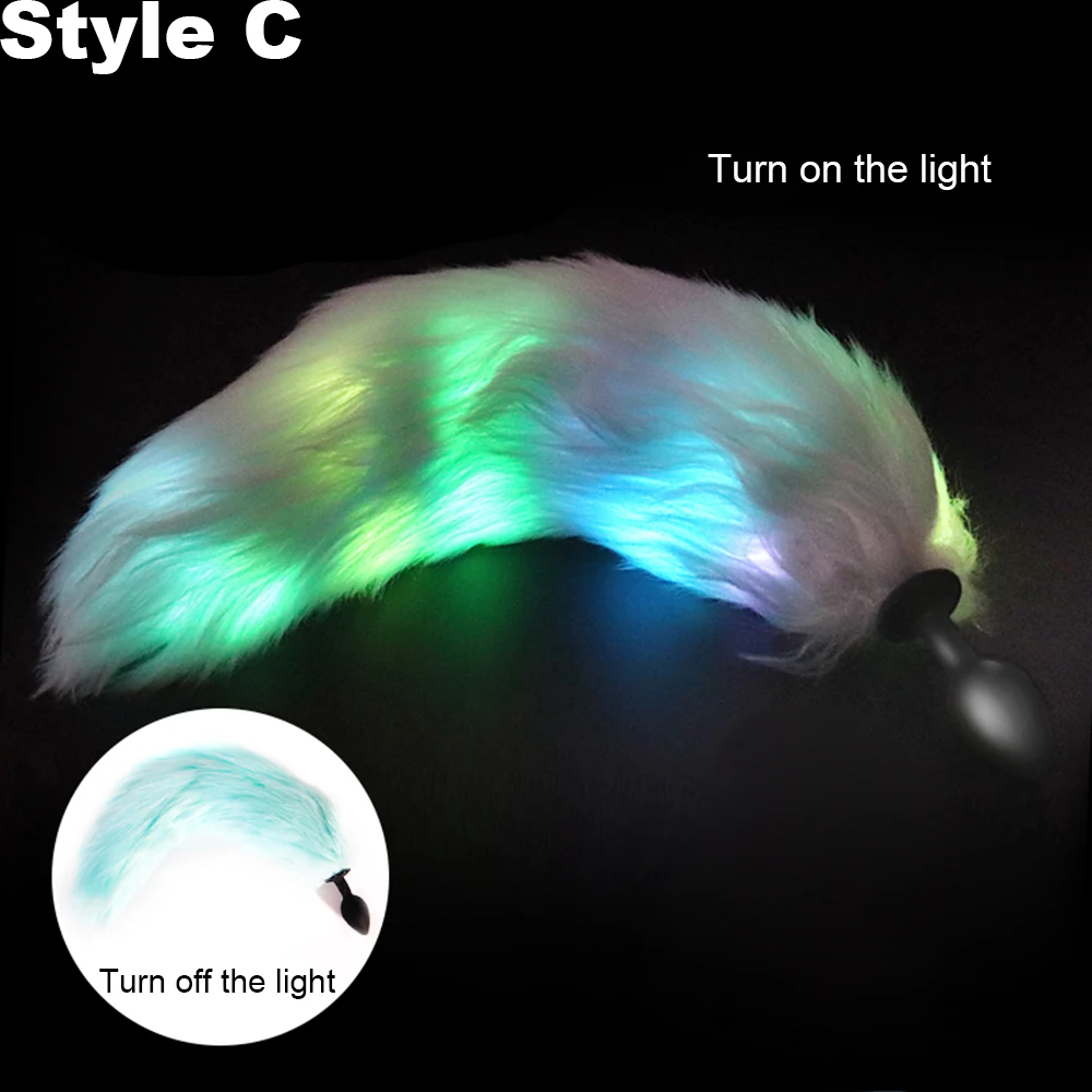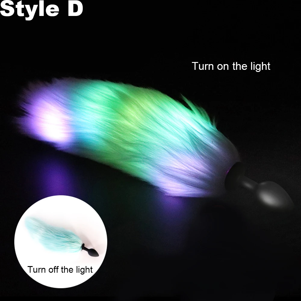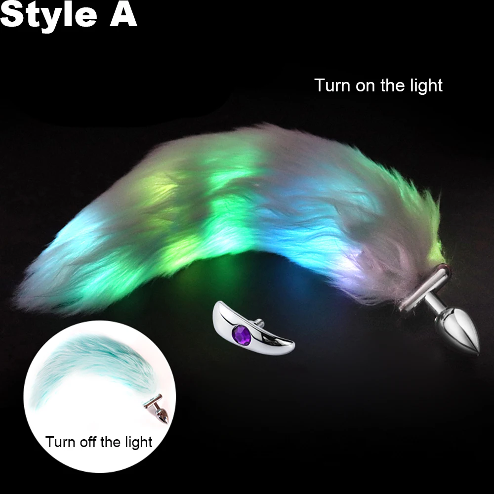 Анальная пробка Fanala 2 в 1, металлическаясиликоновая, с синим светящимся светом, с алмазным основанием, анальная пробка лисий хвост, для ведомых игр для взрослых