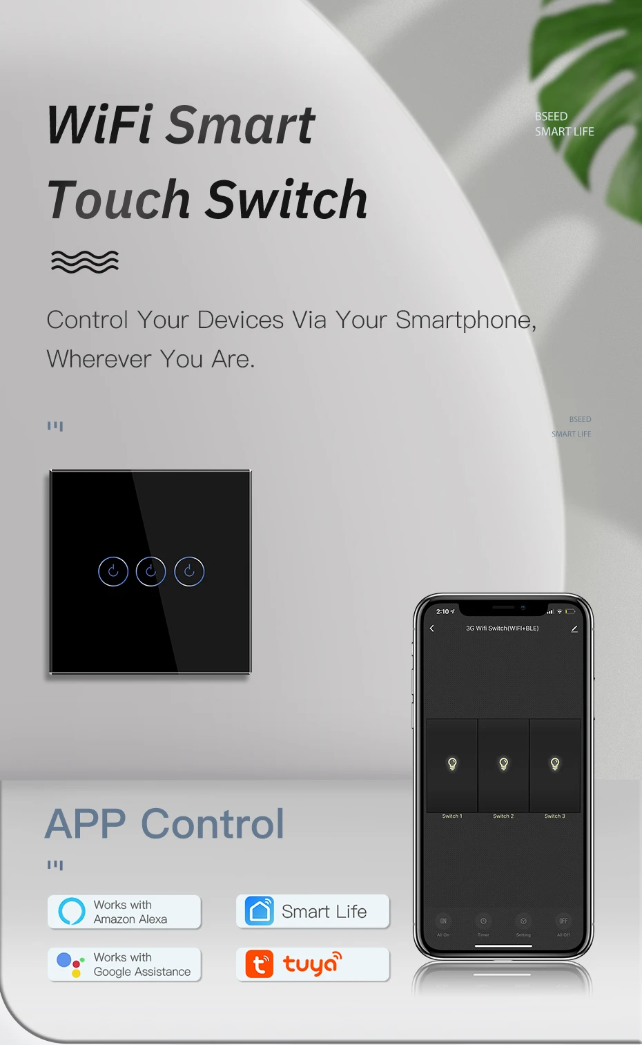 Сенсорный высветильник ель BSEED, 3 клавиши, 123 дюйма, с поддержкой Wi-Fi