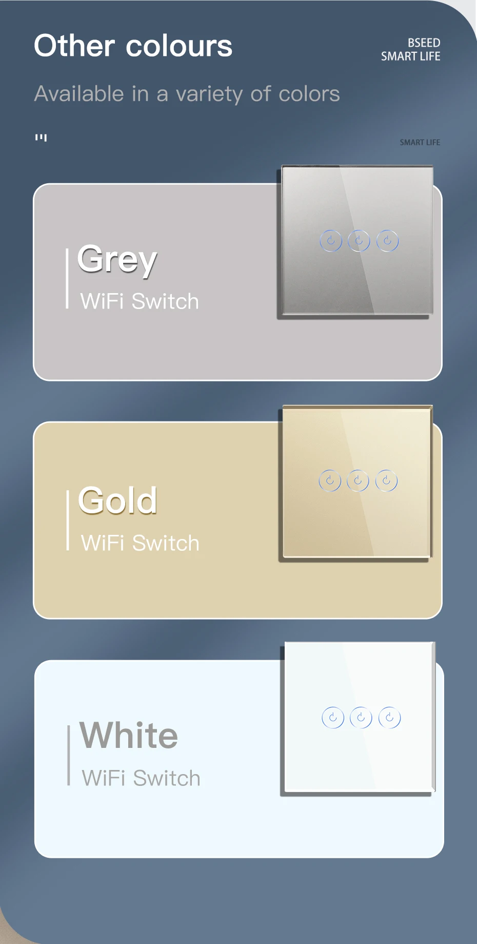 A:Да, мы предлагаем двухполосный сенсорный переключатель Wi-Fi, он работает стабильно. Но вы должны по крайней мере купить 2 двухполосные переключатели wifi. (Приложение использует многофункциональную функцию ассоциации управления)