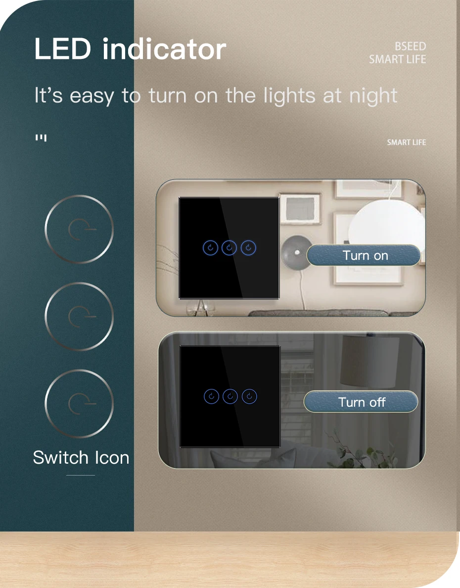 A:Синяя подсветка будет включаться, когда проводка пройдет успешно. Позволяет вам четко заметить наш сенсорный выключатель в темноте.
