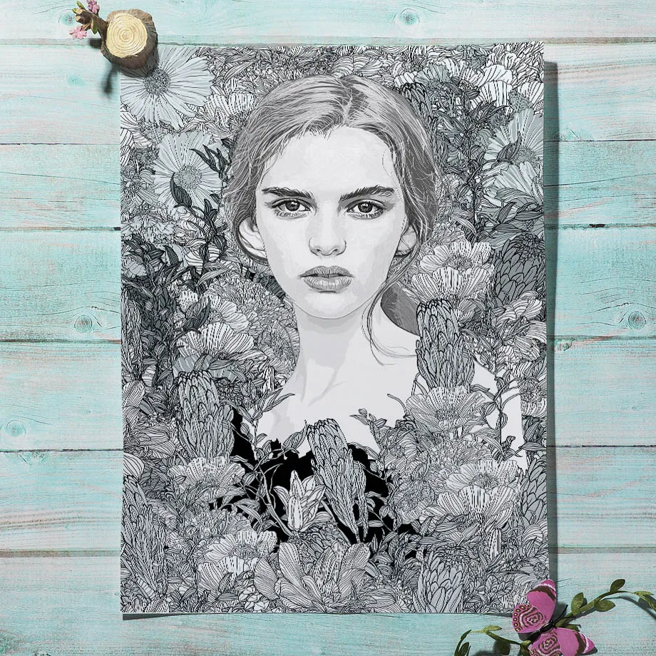 Постер с изображением леди, цветов, листьев, абстрактный, скандинав...