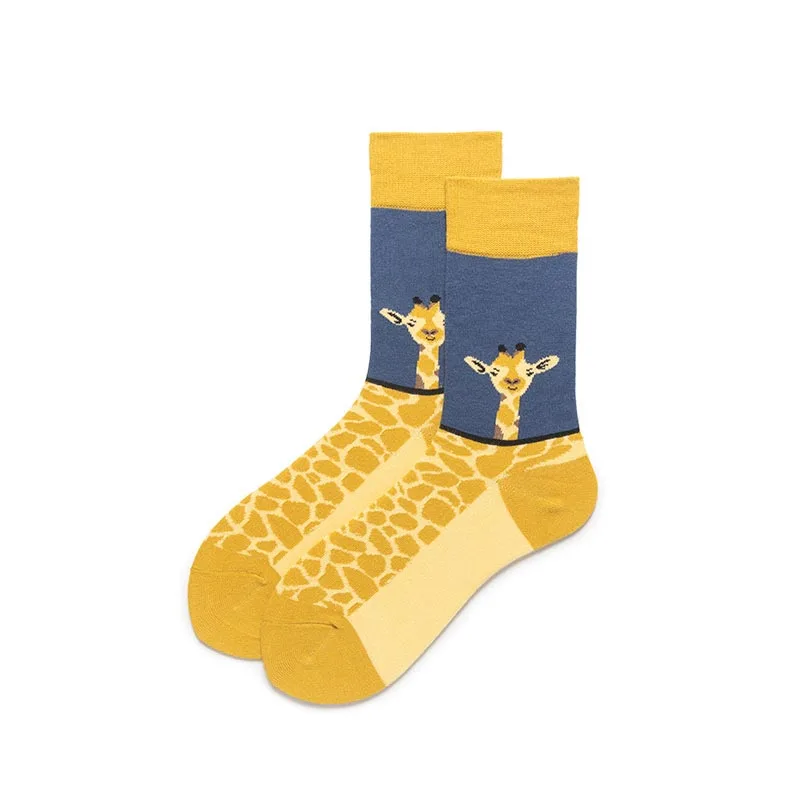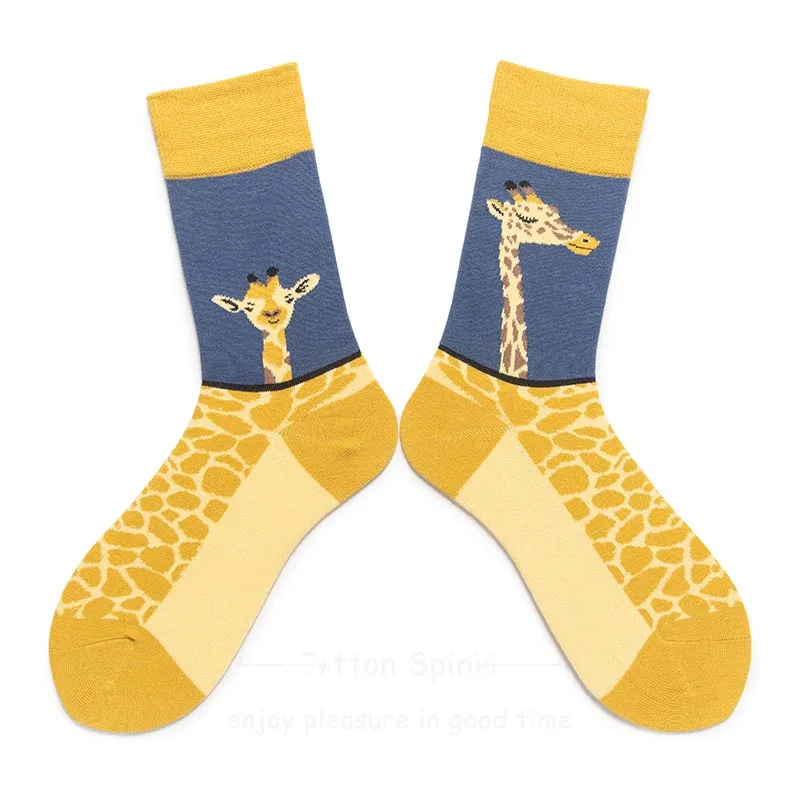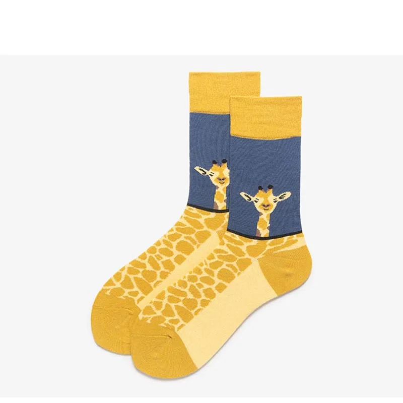 WPLOIKJD Носки жаккардовые для пар в стиле колледжа с мультяшным рисунком жирафа животного индивидуальные трендовые милые забавные носки унисекс icon star icon star icon star icon star icon star