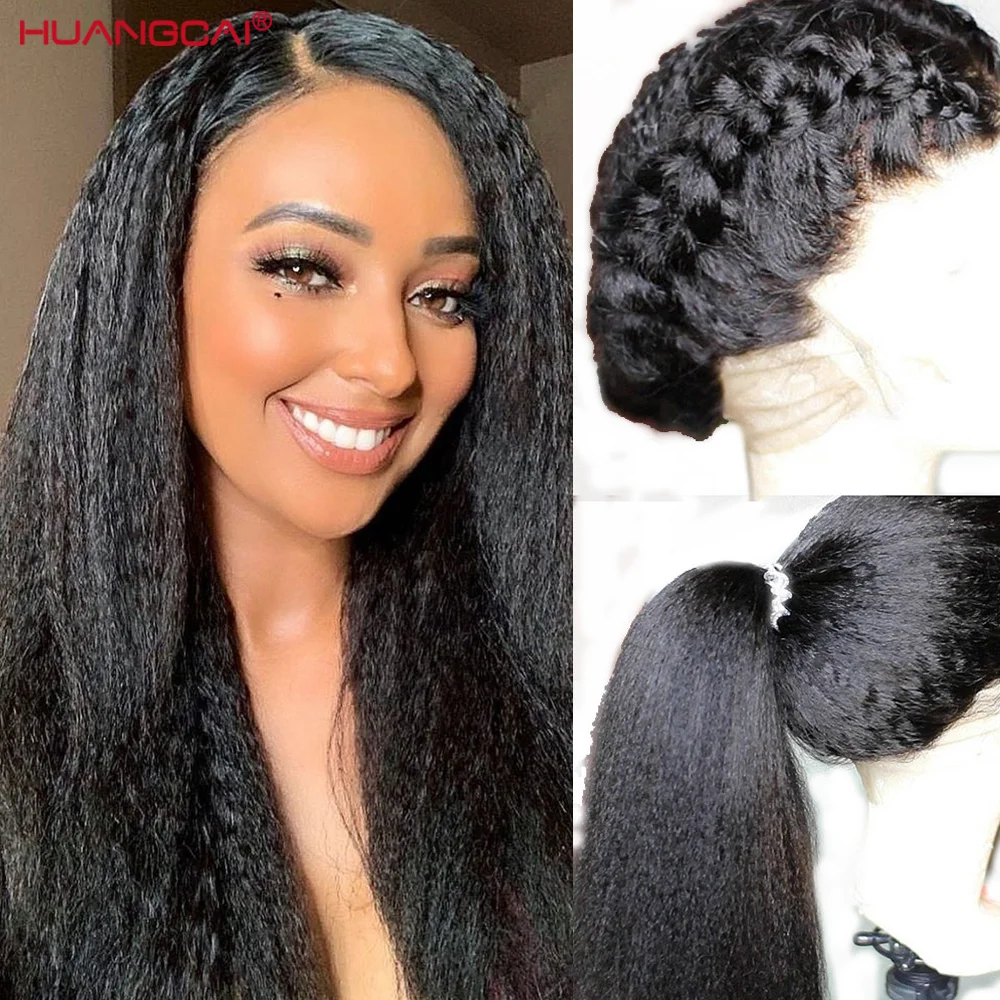Итальянские Парики Yaki 13*4 с фронтальной сеткой, человеческие волосы, курчавые прямые бразильские волосы плотностью 180%, предварительно выщипанные парики без повреждений из человеческих волос