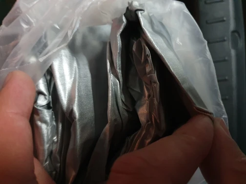 Пришло в вакуумной упаковке. Материал очень тонкий. Мой чехол ХХL на Tucson в три раза больше. Но от солнца защитит точно. рекомендую