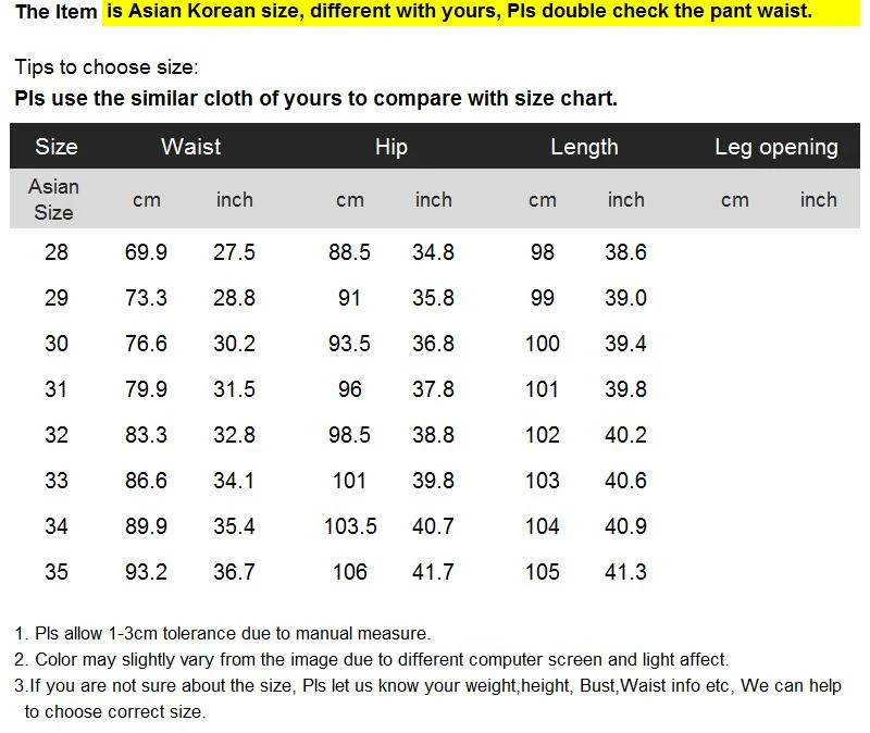 Данный товарАзиатский корейский размер, отличается от вашего, пожалуйста, дважды проверьте обхват талии брюк.