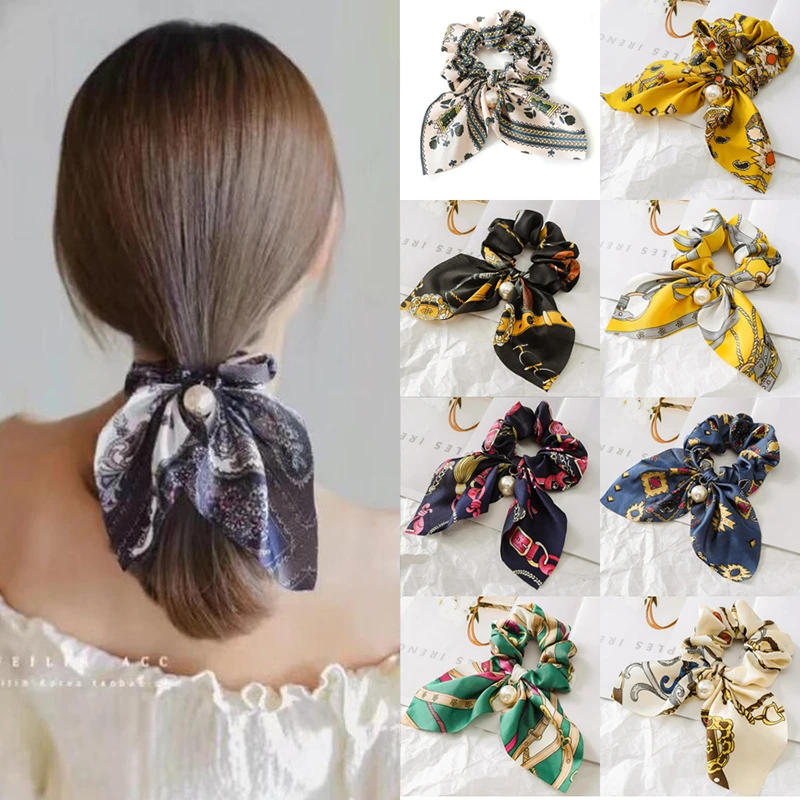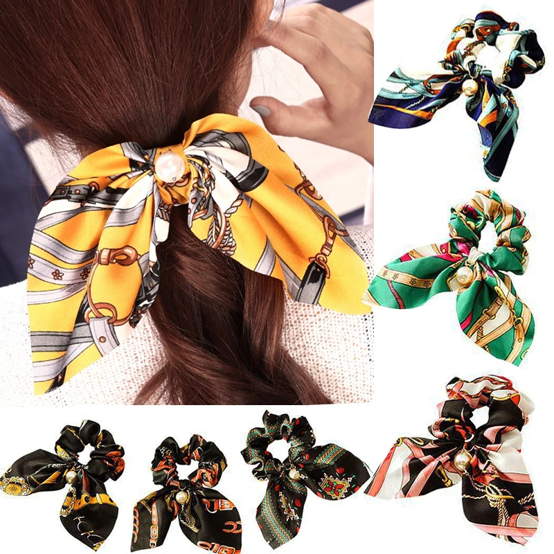 Модные резинки для волос из шифона, Шелковый бант, Женский жемчужный держатель для хвоста, резинка для волос, эластичные резинки, аксессуары для волос, головной убор