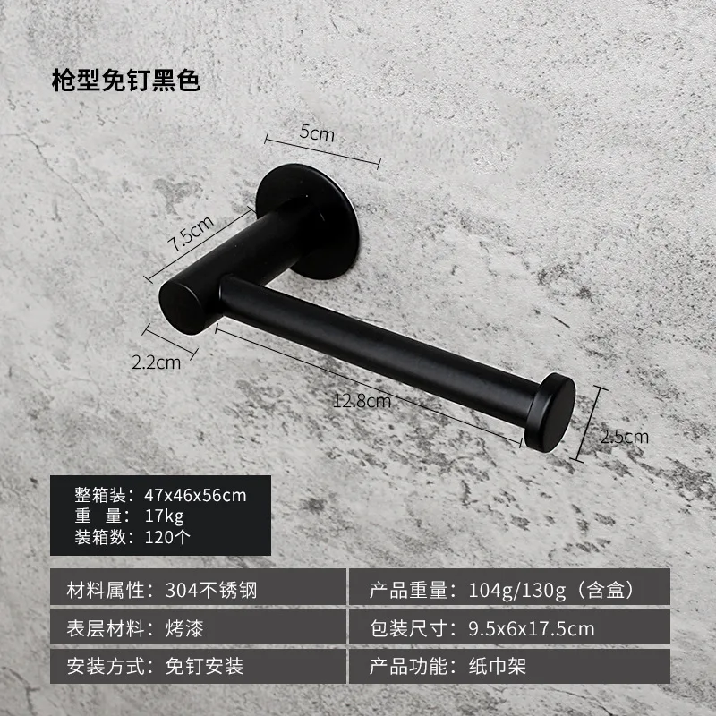 Черная вешалка для полотенец из нержавеющей стали 304, прочный держатель для туалетной бумаги из вискозы без дырочек, ванная комната, рулон бумаги без гвоздей