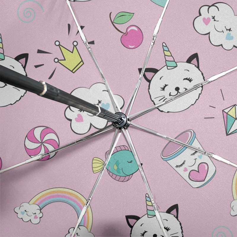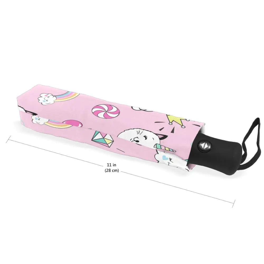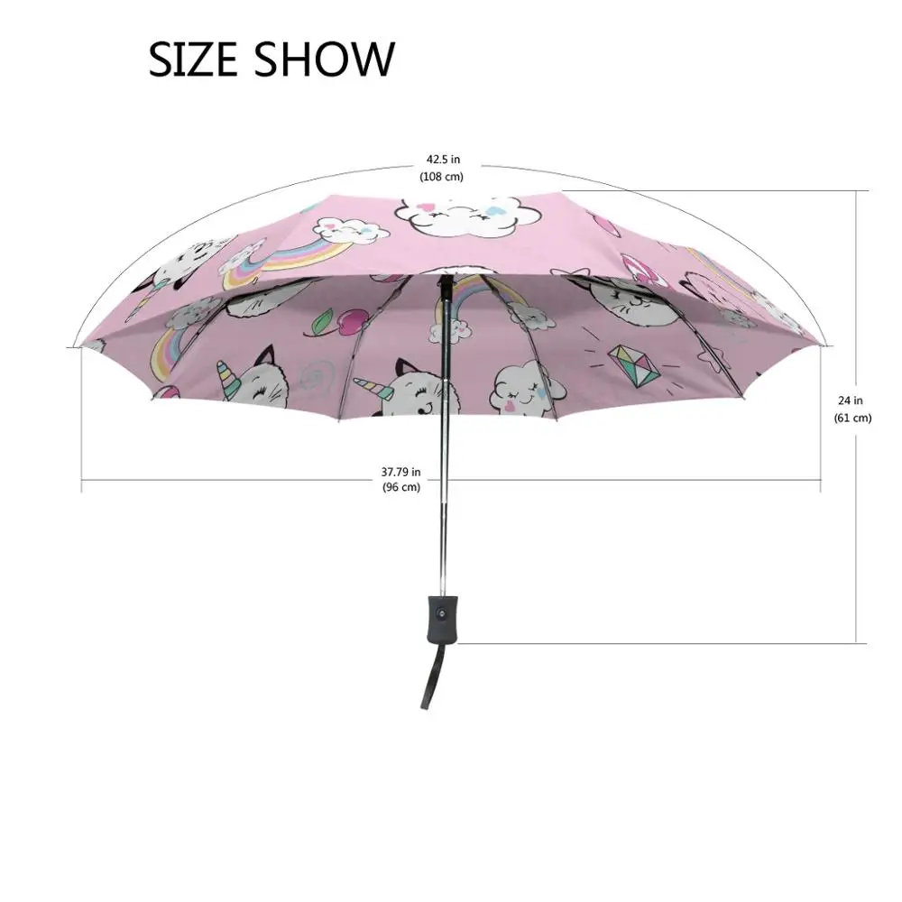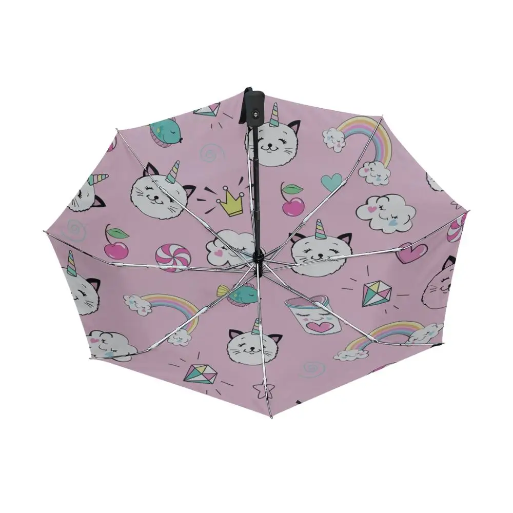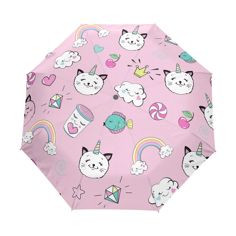 Автоматический зонт с мультяшным рисунком единорога, складной зонт для детей 3, ветрозащитный дорожный Зонт от дождя для женщин и детей