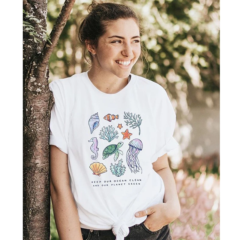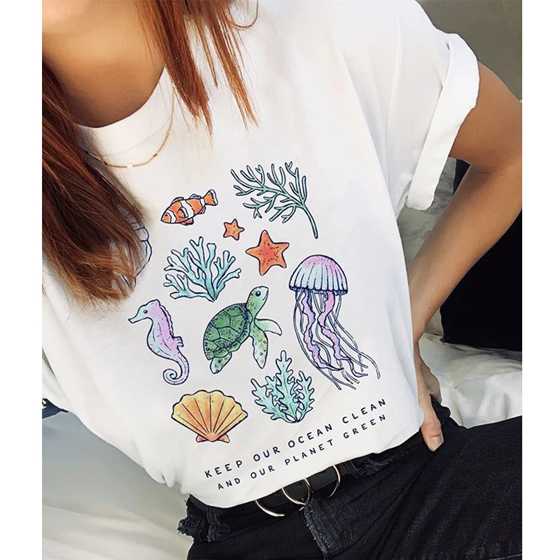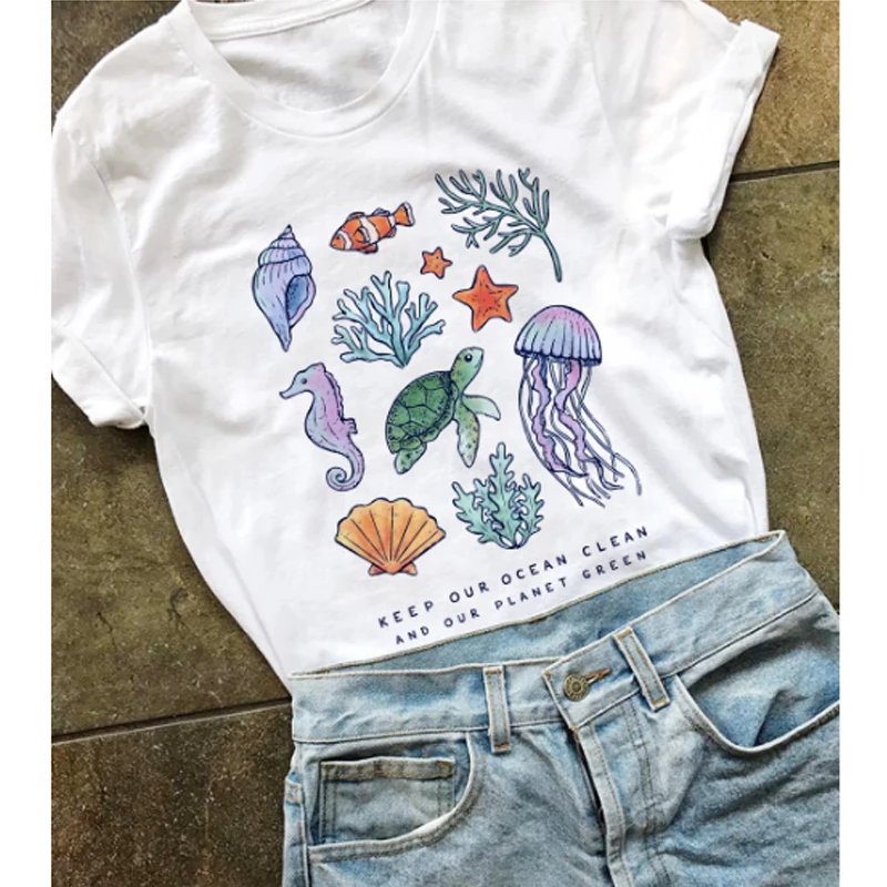 Футболка женская с принтом Keep Our Ocean Clean And Our Planet Green, шикарная графическая эко-футболка с круглым вырезом, лето