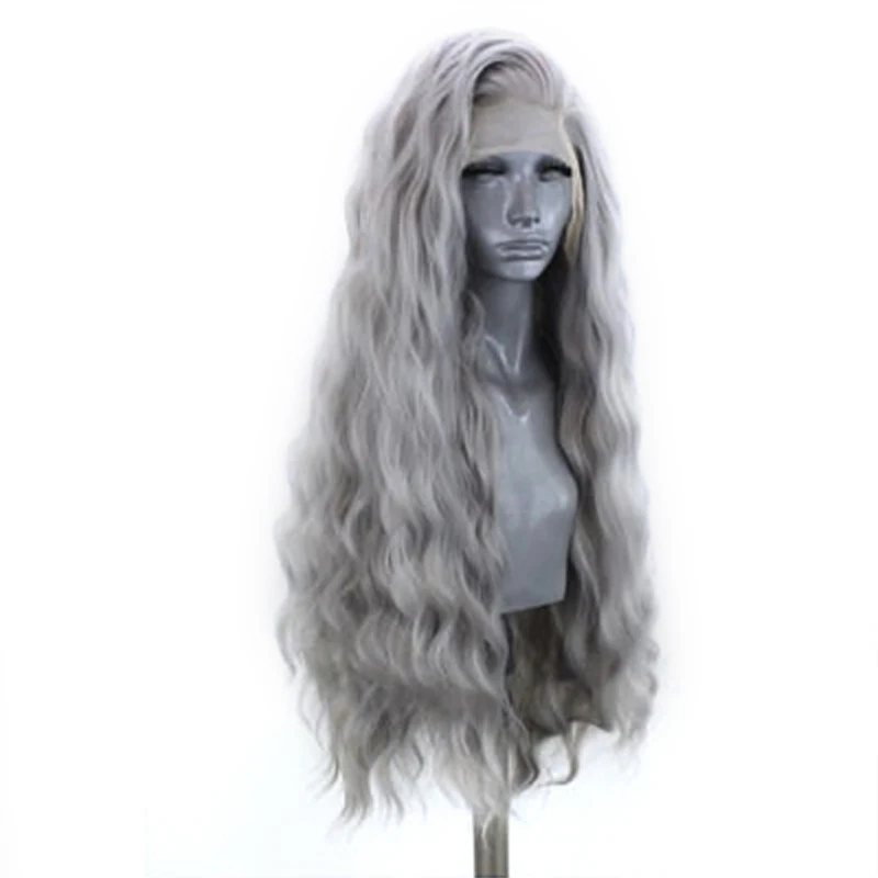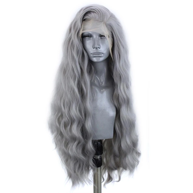 Харизма серебристо-серый синтетический парик фронта шнурка с естественной линией роста волос холодная волна высокотемпературные парики волос для чернокожих женщин
