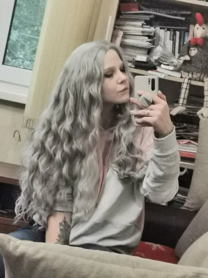 Страна: FR Color: Grey Wig Length: 26inches Density: 150% Доставка: Standard Shipping 30.12.2020