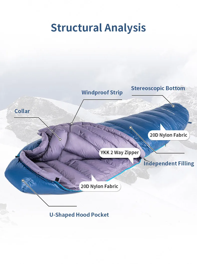Туристический спальный мешок Naturehike, утепленный нейлоновый пух 800FP, ультралегкий, зима 20D, водонепроницаемый, для мам