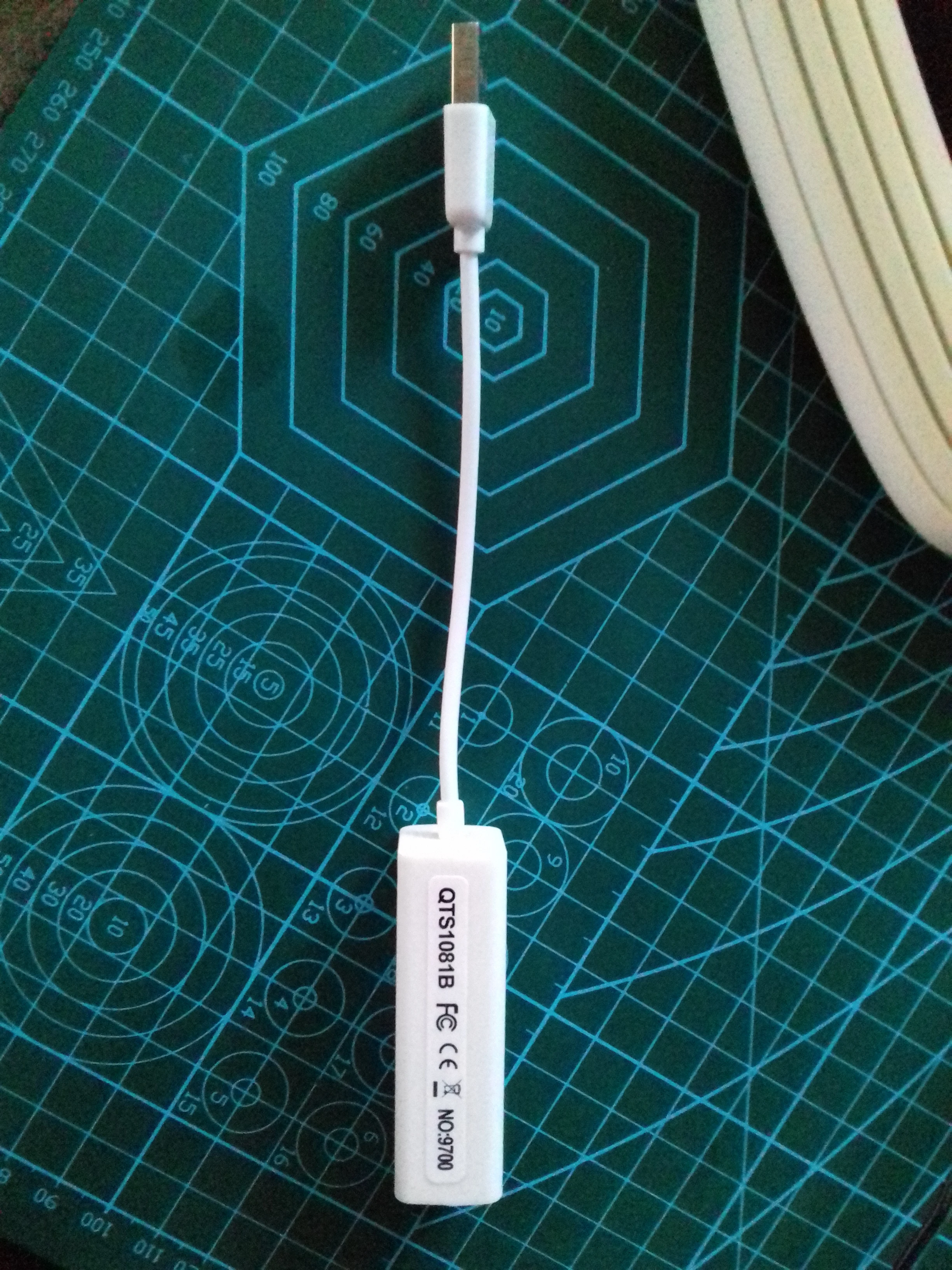 Упаковано без пузырчатого полиэтилена, но не повреждено. Реальная скорость: отправить 4,8 Mbits, получить 5,4 Mbits, дуплекс 3,6 + 2,3 Mbits. (Сравните скорость сборки на материнской плате: дуплекс 72 + 92 Mbits) Linux работает «вне коробки», Win7 обнаруживает драйверы в Интернете, WinXP требует ручной установки драйвера, Android 7 не работает. Microsheme is Corechips SR9700 DC2001 (Vid_0fe6 & Pid_9700)
