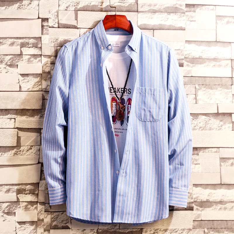 Мужская рубашка в полоску, с длинным рукавом, 2020