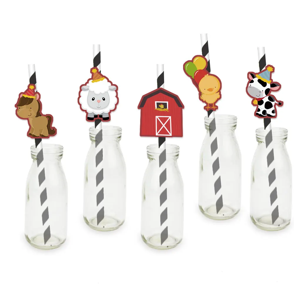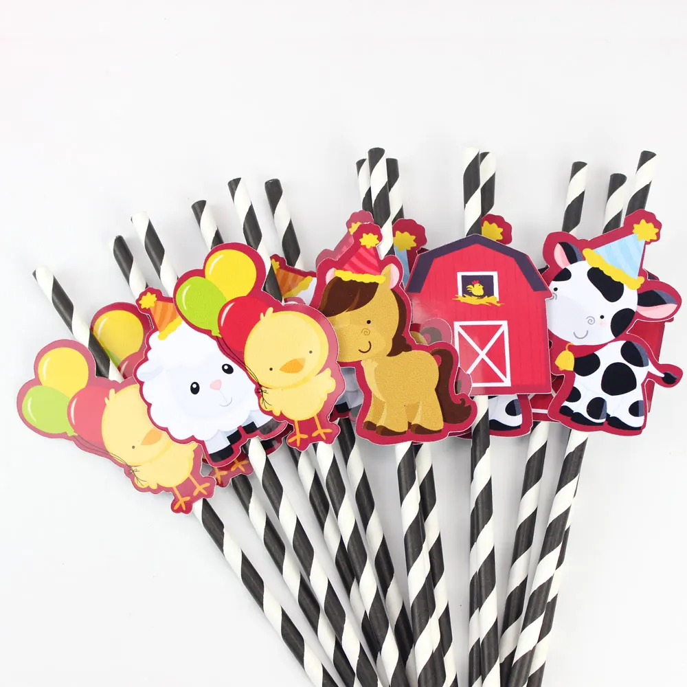 Фермерские животные принадлежности для тематической вечеринки коробка для приглашения на потолок соломинки сумки для торта этикетка для бутылки баннер украшение для вечеринки