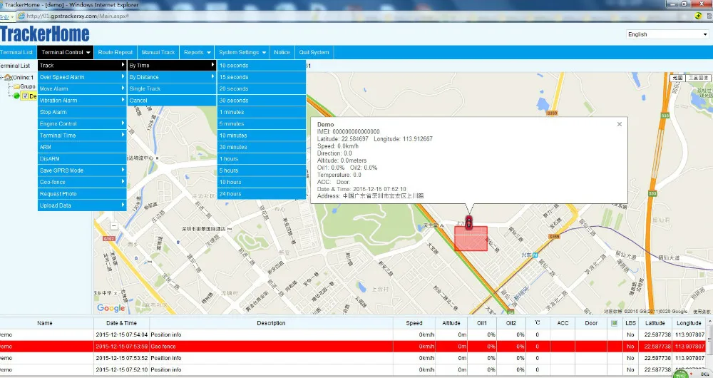 Веб-платформа отслеживания: www.gpstrackerxy.com, демонстрационная учетная запись: имя пользователя: демонстрация, пароль: 8888