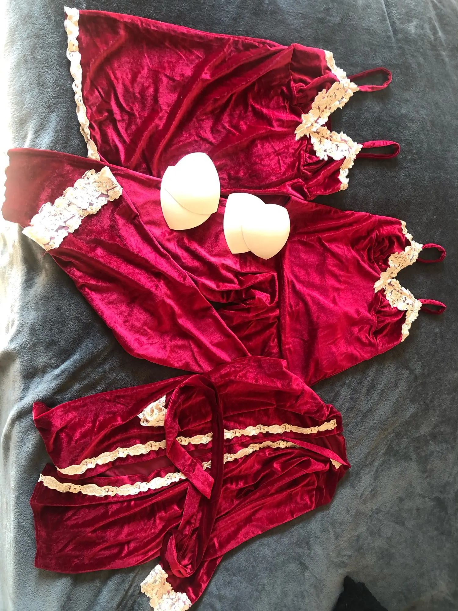 комплект красивый, но неприятный для кожи. очень грубые внутренние швы, лично мне натирают. надеть ради красоты на полчаса-час - ок. но не для сна точно.
