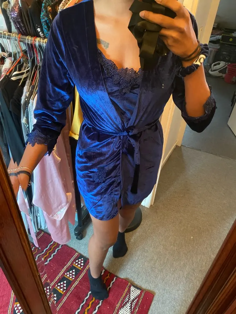На рост 164 халатик чуть прикрывает попу. Качество к телу вроде и норм, но чуть какое то липнет...у меня есть велюр костюмчик с шортами российского производства - очень классное и приятное, здесь нет синтетика добавлена. XXL на р50 впритык, ОТ 90, ОГ 106... С отправкой продавец вынос мозга - уже статус отправки поставили, номера отслеживания нет, пишу им, говорят заказ не оплачен заблокирован - В СМЫСЛЕ, после оплаты только заказ формируется... Странный продавец, че то мутит