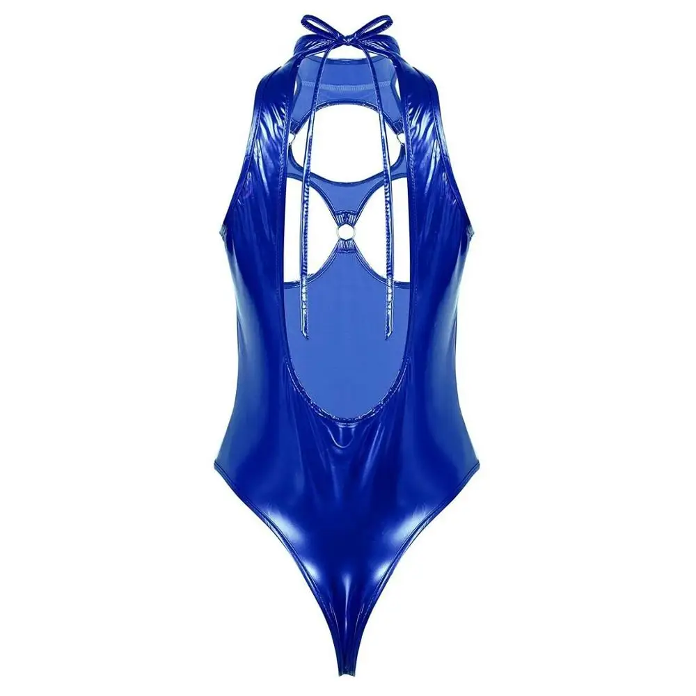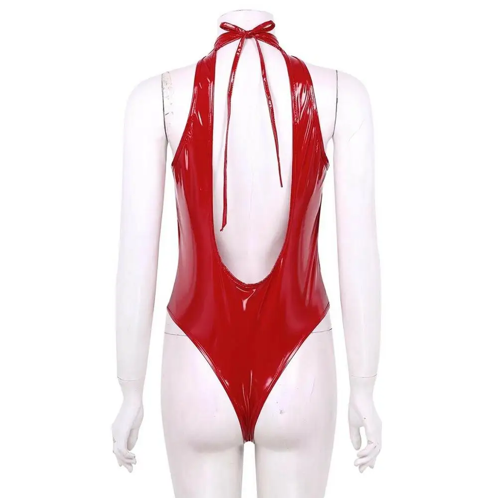 Женский популярный Цельный купальник-стринги Женское белье из лакированной кожи, мокрый внешний вид.С вырезом на шее и без рукавов, с вырезами спереди, без спинки и выреза, с высоким вырезом.Размер:Обхват груди: 82-110 см, обхват талии: 70-80 см, от шеи до шагового шва: 63 см