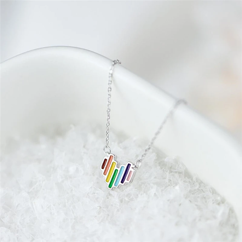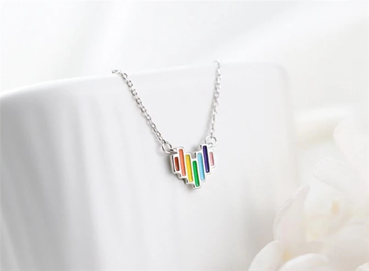 Ожерелье женское из серебра 925 пробы с радужным сердцем и цепочкой до ключиц