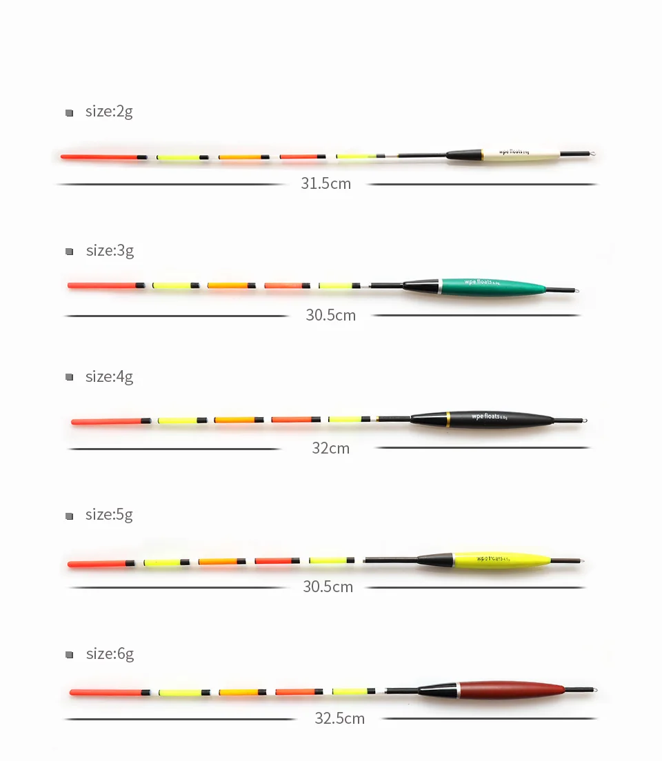 Поплавок для рыбалки марки W.P.E, 5 шт.лот, поплавки для баргузинской ели, размер 2-6 г, для ловли карпа, поплавок, рыболовные легкие поплавки, разноцветные
